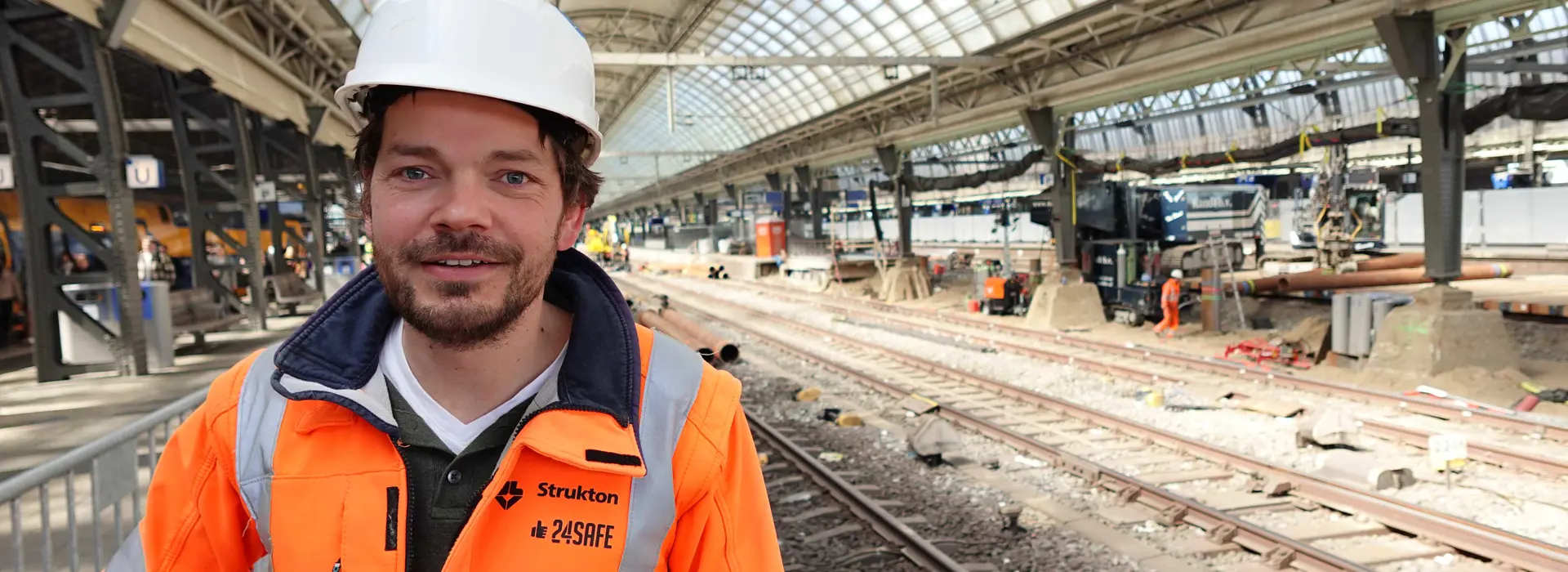 Ik ben Robert Hilhorst, 40 jaar, en ik ben manager Realisatie bij Strukton en verantwoordelijk voor de uitvoering van het werk van Strukton aan de perrons, de trappen en roltrappen, de ondergrondse fietsenstalling en de oostelijke reizigerstunnel van Amsterdam Centraal.