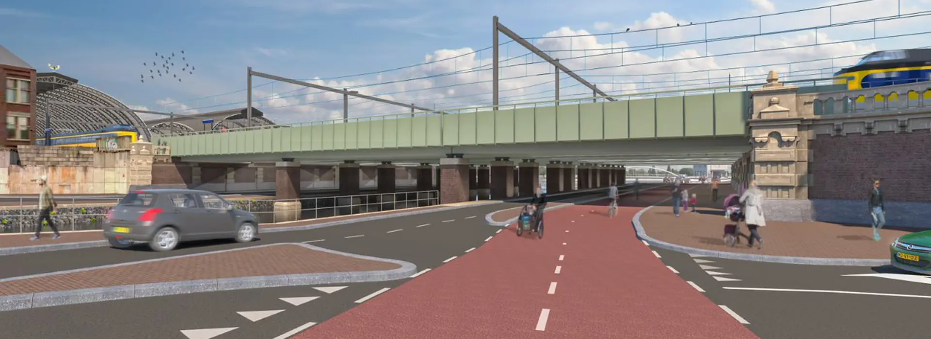 De nieuwe spoorbruggen krijgen een monumentaal karakter, passend bij de uitstraling van Amsterdam.