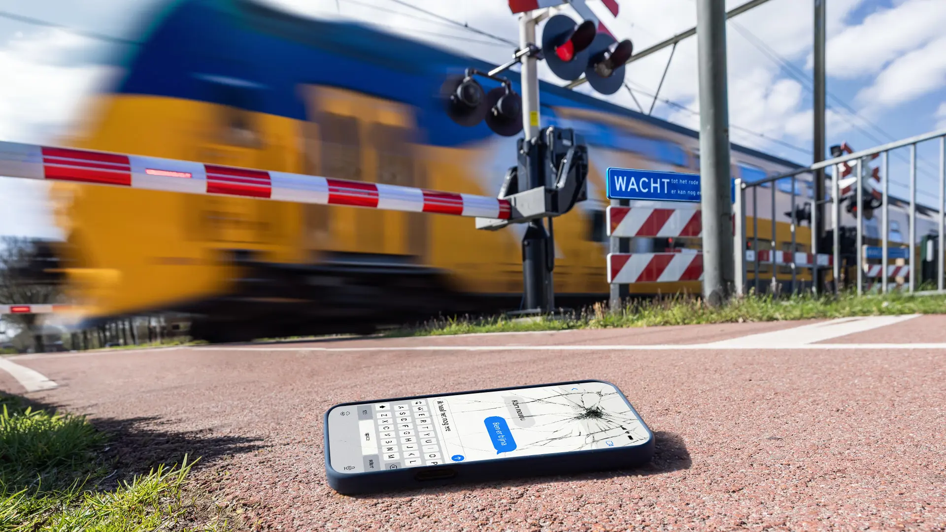 Natuurlijk begrijpen we dat je soms haast hebt. Maar een spoorwegovergang is daar niet de plek voor. Dat geeft gevaar. Wacht altijd tot het rode licht volledig gedoofd is. Dan kun je het altijd navertellen en zorg je dat haast niet je laatste berichtje wordt.