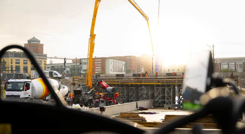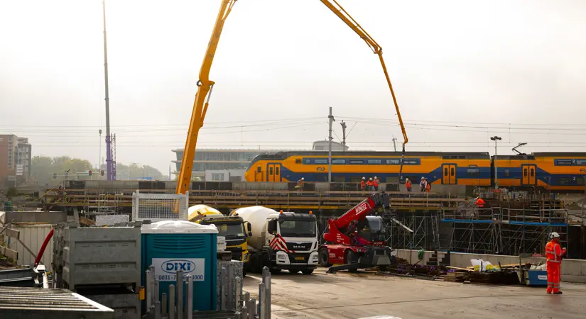 Voor hoofduitvoerder Frank Derlagen van aannemerscombinatie Mobilis-Hegeman is de betonstort een bijzonder moment. “Dit voorjaar hebben we natuurlijk een spektakel gehad met het op zijn plek leggen van het spoordek, maar ondertussen is in de luwte heel veel gebeurd. We hebben een waterberging gebouwd, die ook al van nut is geweest, en het beton van de toeritten is gestort. Nu is de bypass aan de beurt, een laatste grote toevoeging aan het project.”