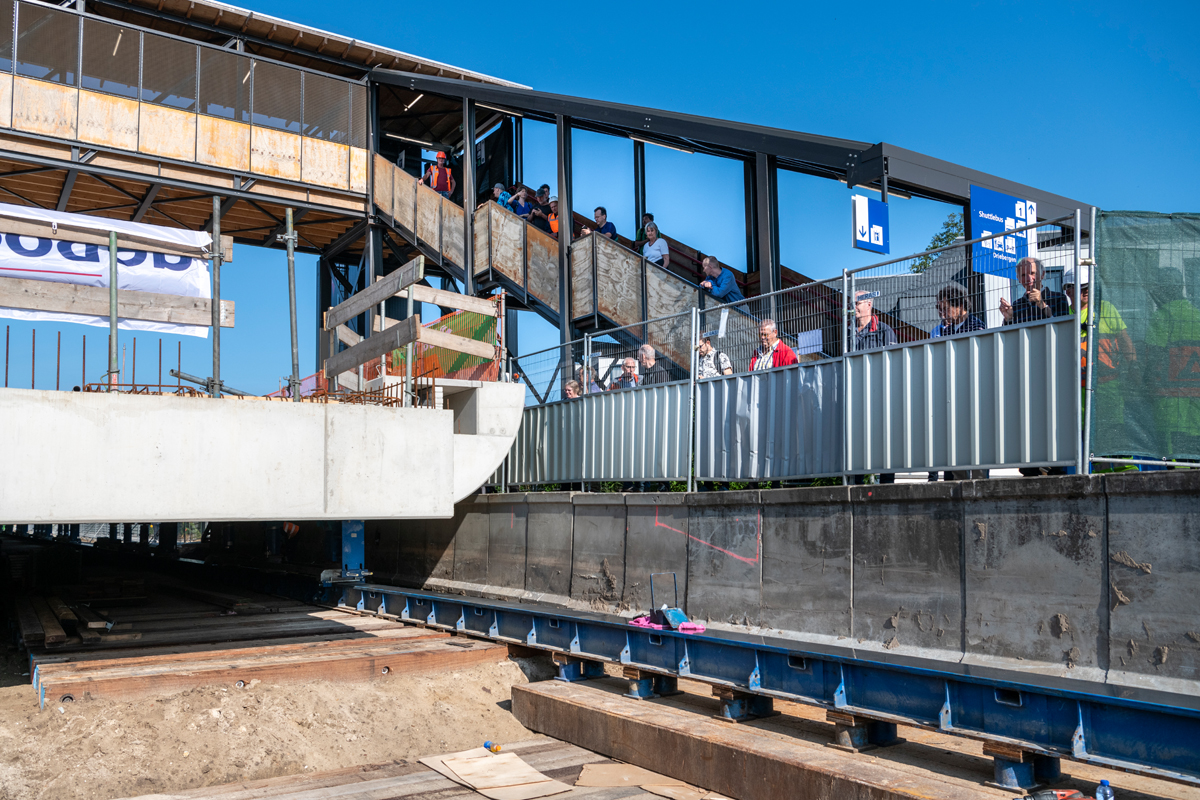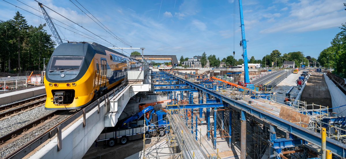 Zondagochtend 21 juli vroeg heeft station Driebergen-Zeist een nieuw, tweede spoordek gekregen. Het gevaarte van 2.900 ton is millimeter voor millimeter op zijn plek geschoven en dat leverde veel bekijks op. In maart volgend jaar wordt het nieuwe station opgeleverd.