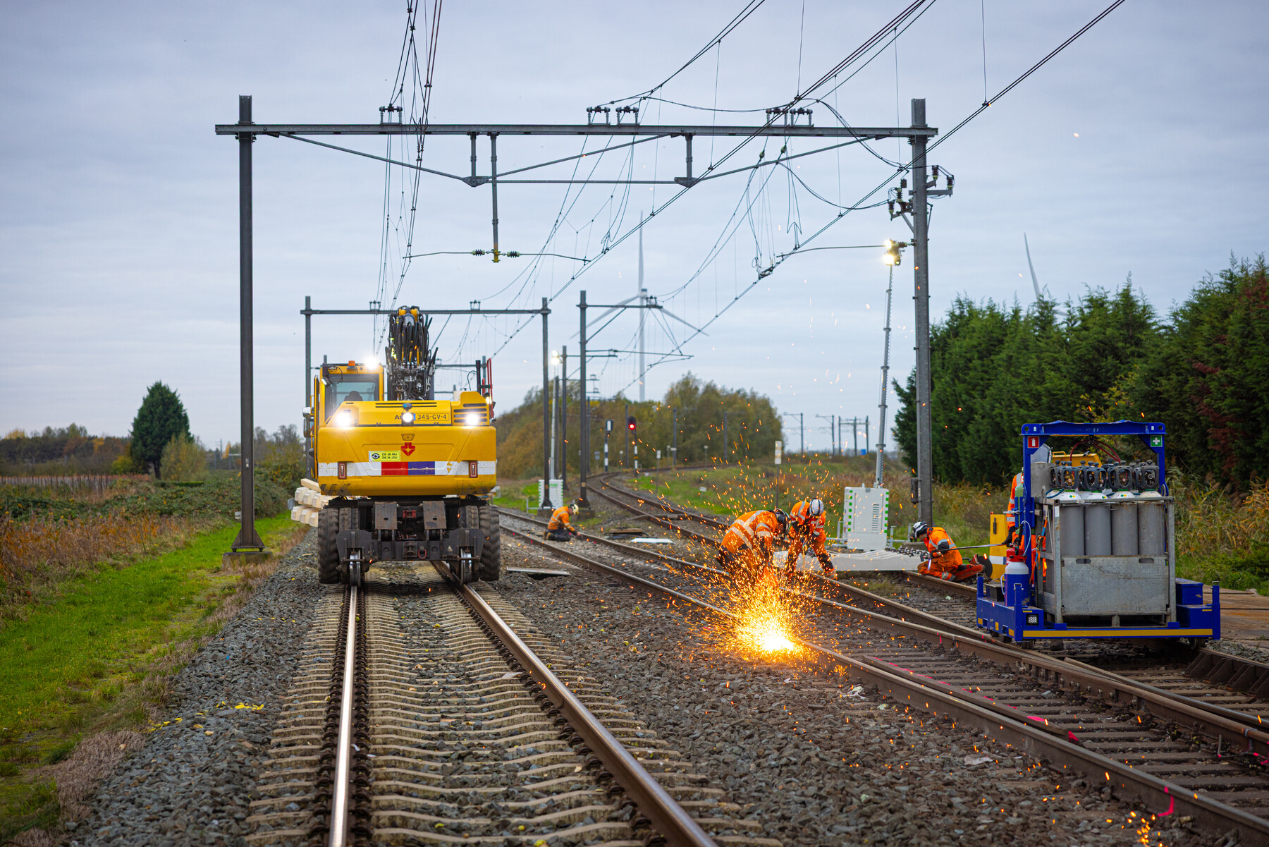 Het einde van de herstelwerkzaamheden is in zicht. Het ligt op schema. Aannemer Strukton was vanochtend bezig met het laatste laswerk. Ook wordt het werk aan de overweg afgerond. Uiteraard testen we alles nog goed voordat we over het traject weer treinen laten rijden. Zoals het er nu naar uitziet, zouden de eerste treinen vannacht weer kunnen rijden. We raden aan om de NS-reisplanner voor vertrek te checken.