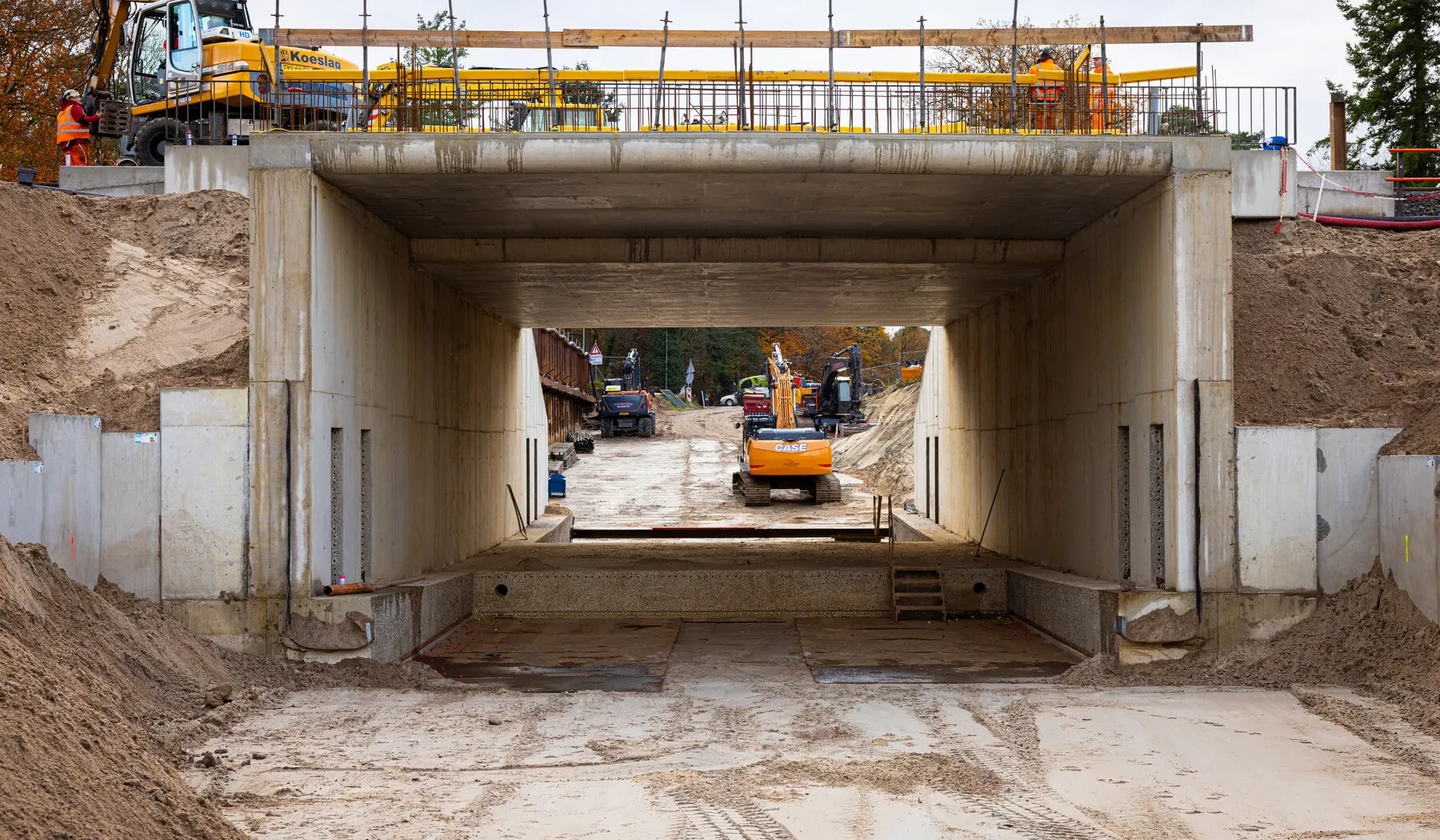 De onderdoorgang voor langzaam verkeer liep tijdens de 100-urige buitendienststelling een beetje vertraging op. Vlak voordat daar het schuiven met hydraulische vijzels begon, ontdekte we daar veel leem in de grond. Daarvoor waren ook last-minute aanpassingen nodig om het werk te vervolgen. Al met al kwam het uiteindelijk precies binnen de tijd goed. Maandagochtend om 05.00 uur reed de eerste trein over de onderdoorgangen.
