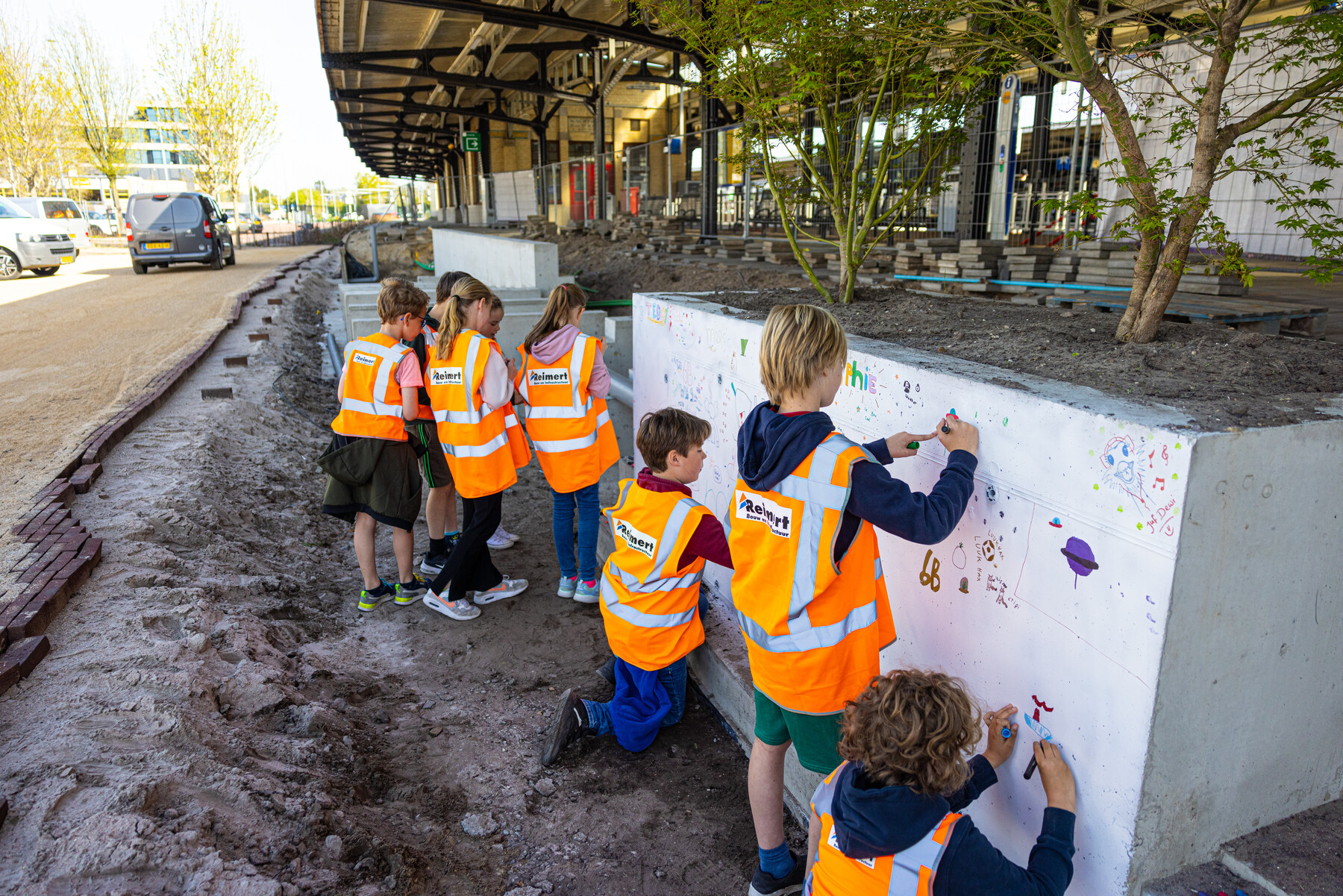 Groep 6 van de RK Minister Calsschool uit Naarden bezocht de bouwlocatie naast station Naarden - Bussum. Samen met aannemer Reimert Bouw en infrastructuur is er een actief programma opgesteld voor de leerlingen. Na een korte presentatie op school gingen de leerlingen aan de slag gegaan met verschillende activiteiten op de bouwplaats. Zo is er een muur beschilderd die later wordt dichtgemetseld en zo als tijdscapsule bewaard wordt. Daarnaast werden de handen uit de mouwen gestoken en zijn er straten gelegd en machines bestuurd. Ook konden de leerlingen via een VR-bril een digitale bouwplaats bezoeken en kregen ze uitleg over veiligheid en de bouwwereld.