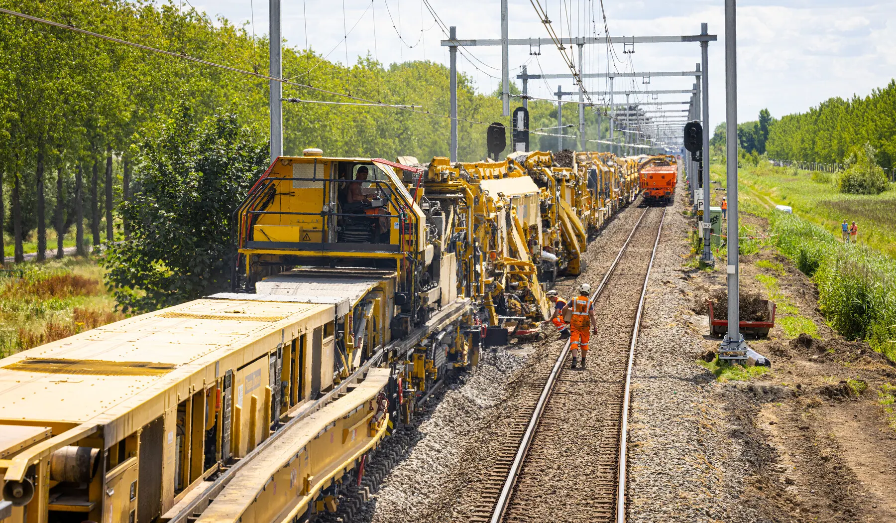 Kilometer lange werktrein vernieuwt spoor Culemborg