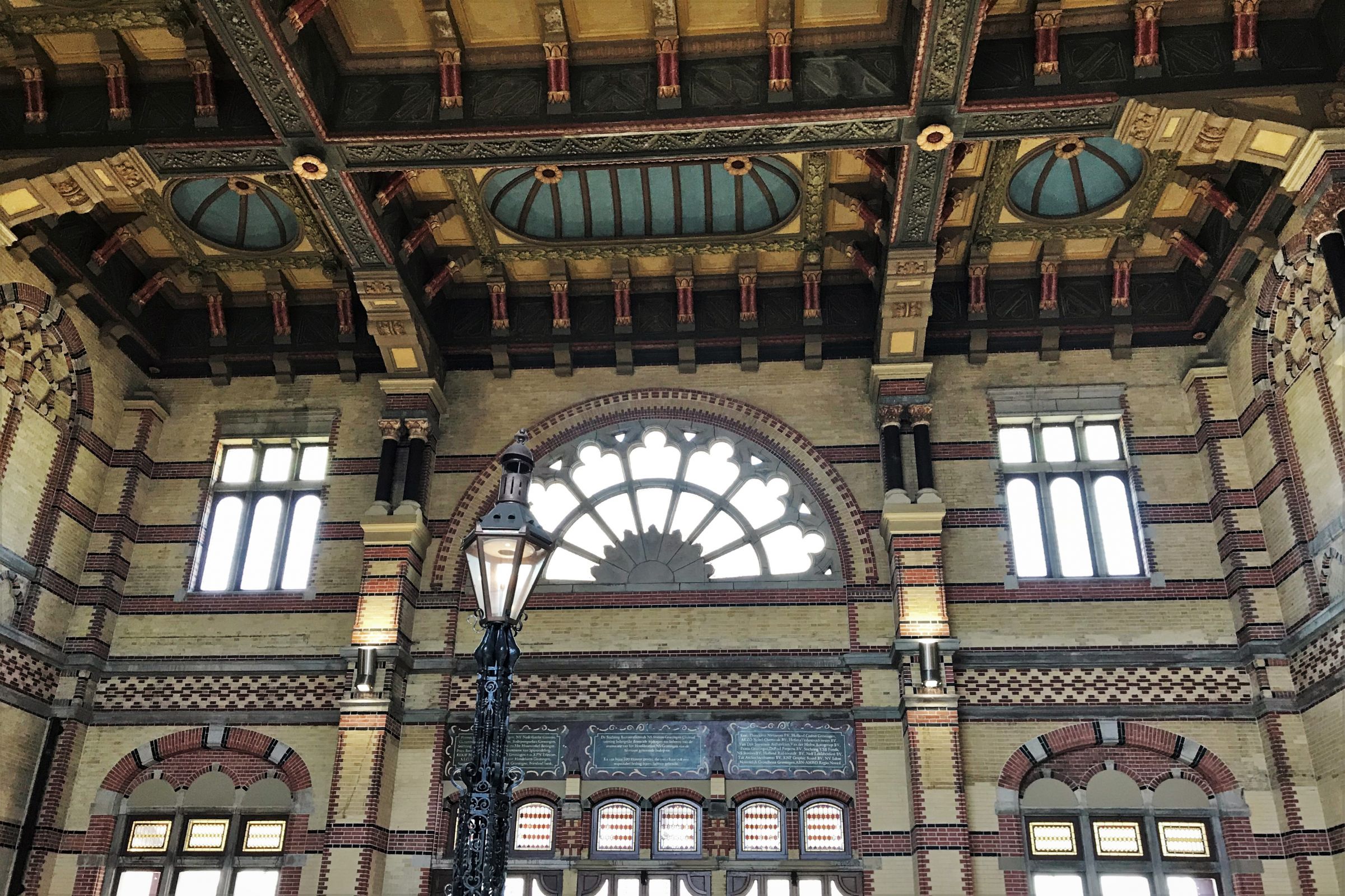 De architect vond driepasbogen lichter ogen dan enkelvoudige halve bogen. Je ziet ze hier terug in één van de gallerijen, een zijvleugel van het stationsgebouw.