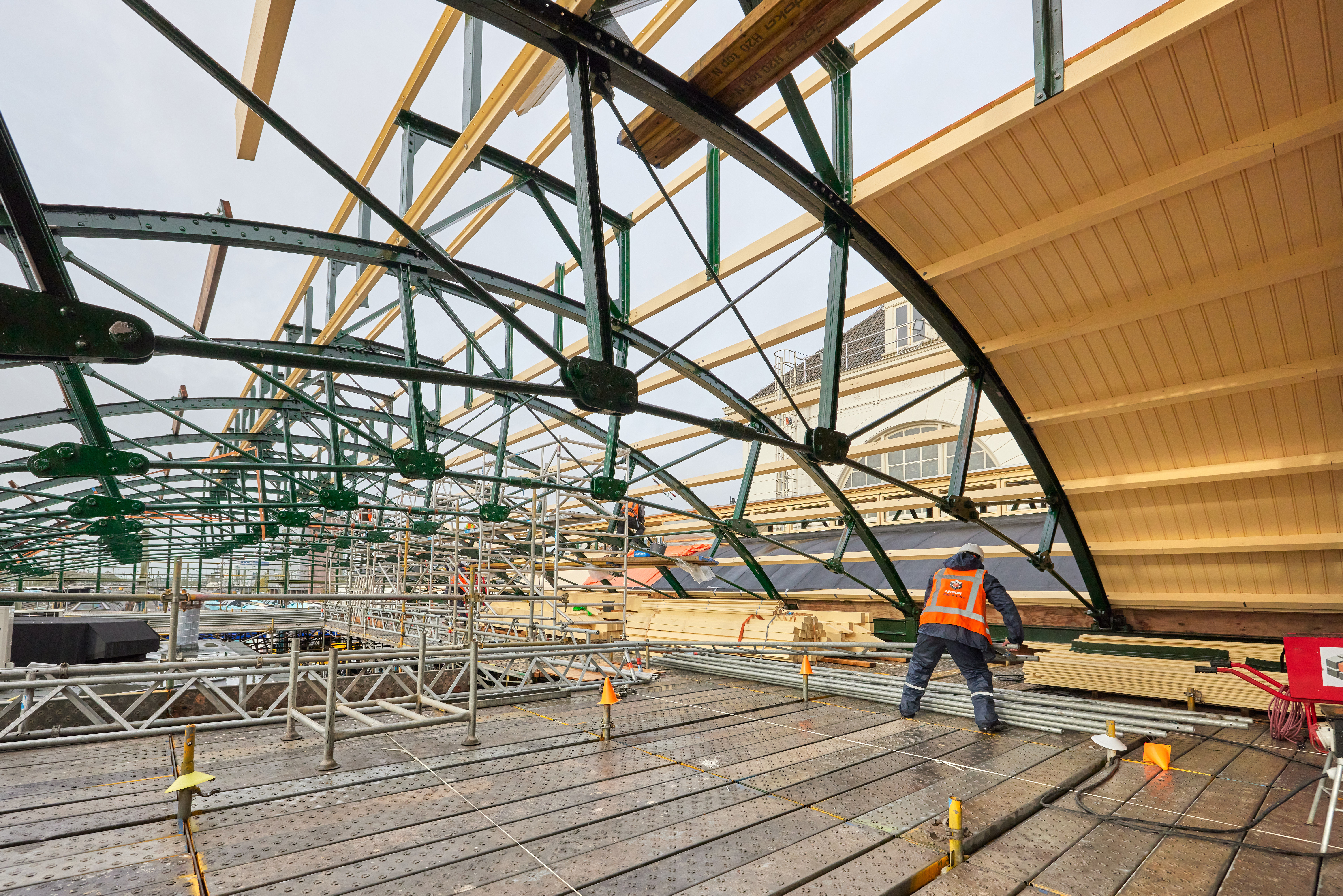 Nadat de hoge kappen helemaal zijn teruggeplaatst, gaan we verder met het terugplaatsen van de kappen boven de perrons. De totale renovatie duurt nog tot eind 2023.