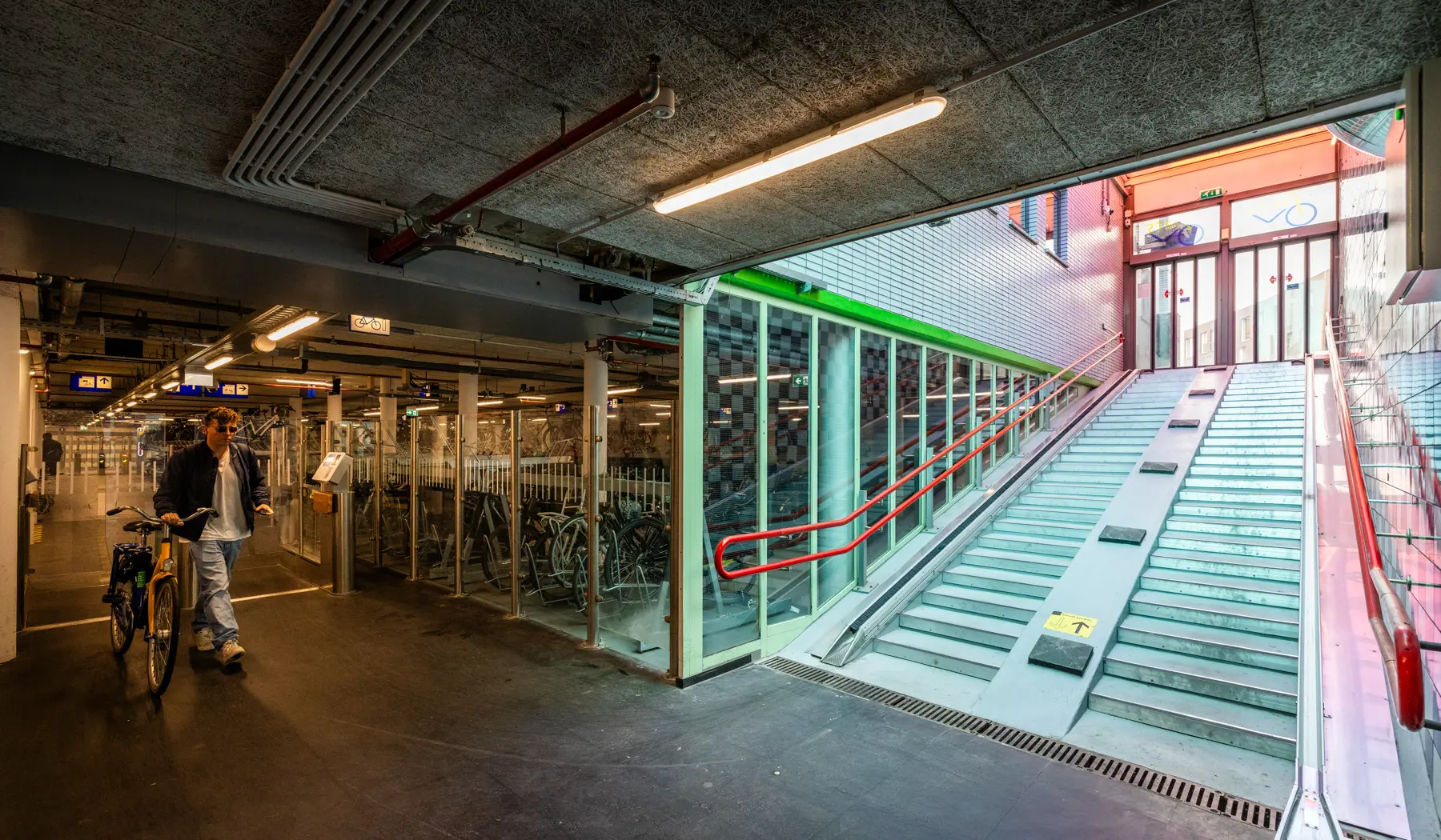 Jeroen: “De rolband is een ondersteunend middel, maar je moet nog altijd zelf de fiets omhoog of omlaag duwen. Het maakt de stalling toegankelijker voor mensen met zware fietsen of voor bijvoorbeeld ouderen. Want ook zij moeten gebruik kunnen maken van onze stallingen.”