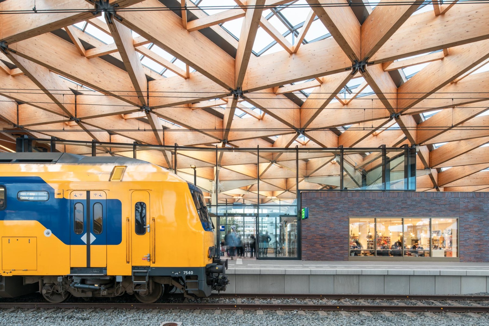 Bernadette is erg te spreken over de samenwerking die er tijdens het project was tussen ProRail, NS, de gemeente, architectenbureaus The Powerhouse Company en De Zwarte Hond, aannemer Hegeman en Heko Spanten, die de volledig houten dakconstructie heeft gemaakt. Dat is de blikvanger van het gebouw en is met 3000 vierkante meter een van de grootste houten constructies van Nederland. "Echt een huzarenstukje", roemt Bernadette het. "De architect heeft het zo mooi ontworpen en samen met de spoorbouwmeester is het station naar een hoger level getrokken."