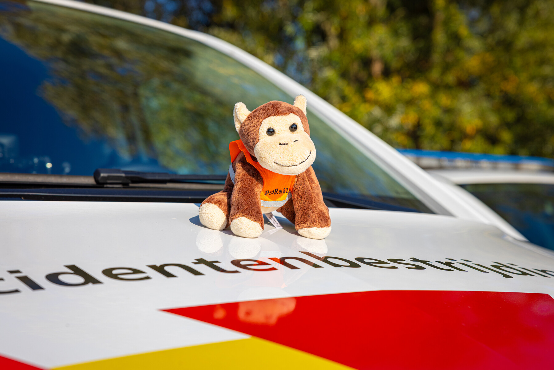 Dat het werkt, zag John dus met eigen ogen bij de politie. “De knuffels leiden af van de gebeurtenis, bieden troost en verzachten de nare ervaring.” De troostaapjes hebben een oranje hesje met het logo van ProRail. Hiermee laten we zien dat wij óók oog hebben voor kinderen die iets vervelends meemaken op en rond het spoor.”
