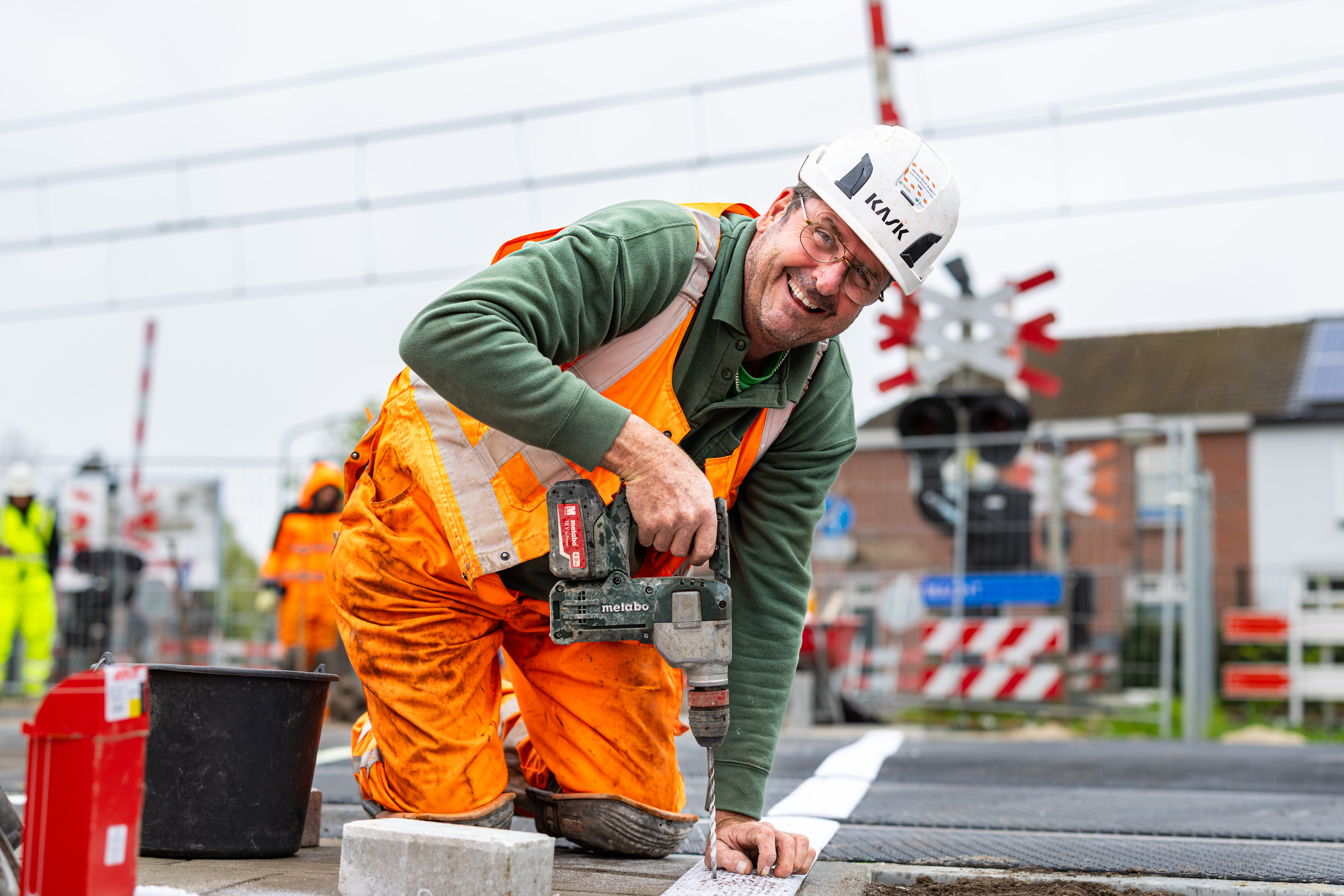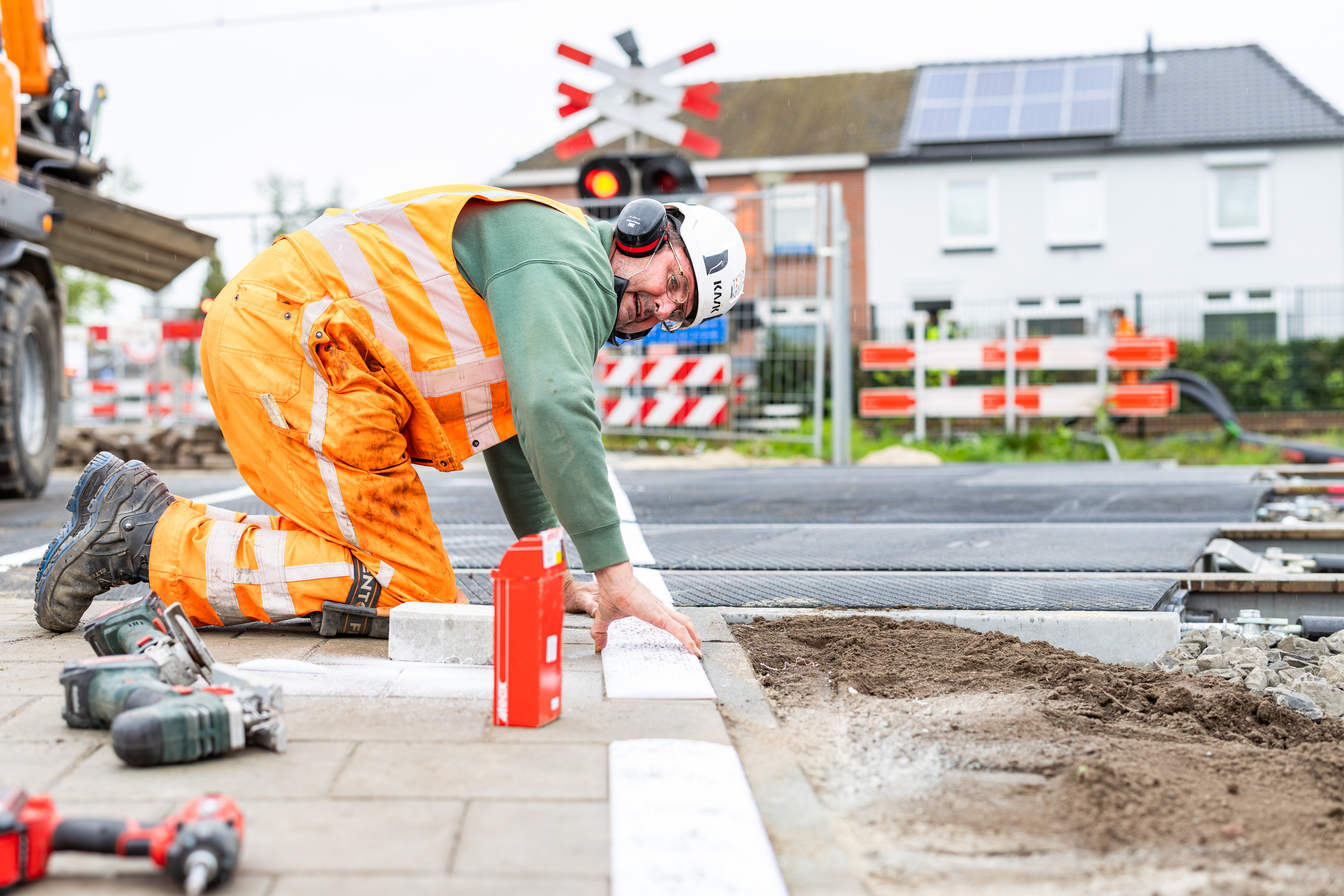 Marcus ging op zoek naar mogelijkheden om de overweg in de juiste richting voelbaar te maken. "Een oversteeklijn, zoals op stations, mag vanwege uitglijgevaar niet op de openbare weg", vertelt hij. "Samen met een collega van de Robert Coppes Stichting heb ik de situatie in Vught bekeken. Vervolgens heb ik dit probleem in 2024 tijdens een BAM-bijeenkomst onder de aandacht gebracht van een veiligheidscoach. Die ontmoette later op een beurs een producent van oversteeklijnen. En zo is samen met ProRail, BAM, Kennis Over Zien en PBT-Consult na veel inzet deze speciale geleidelijn tot stand gekomen. Een mooie samenwerking om trots op te zijn!"