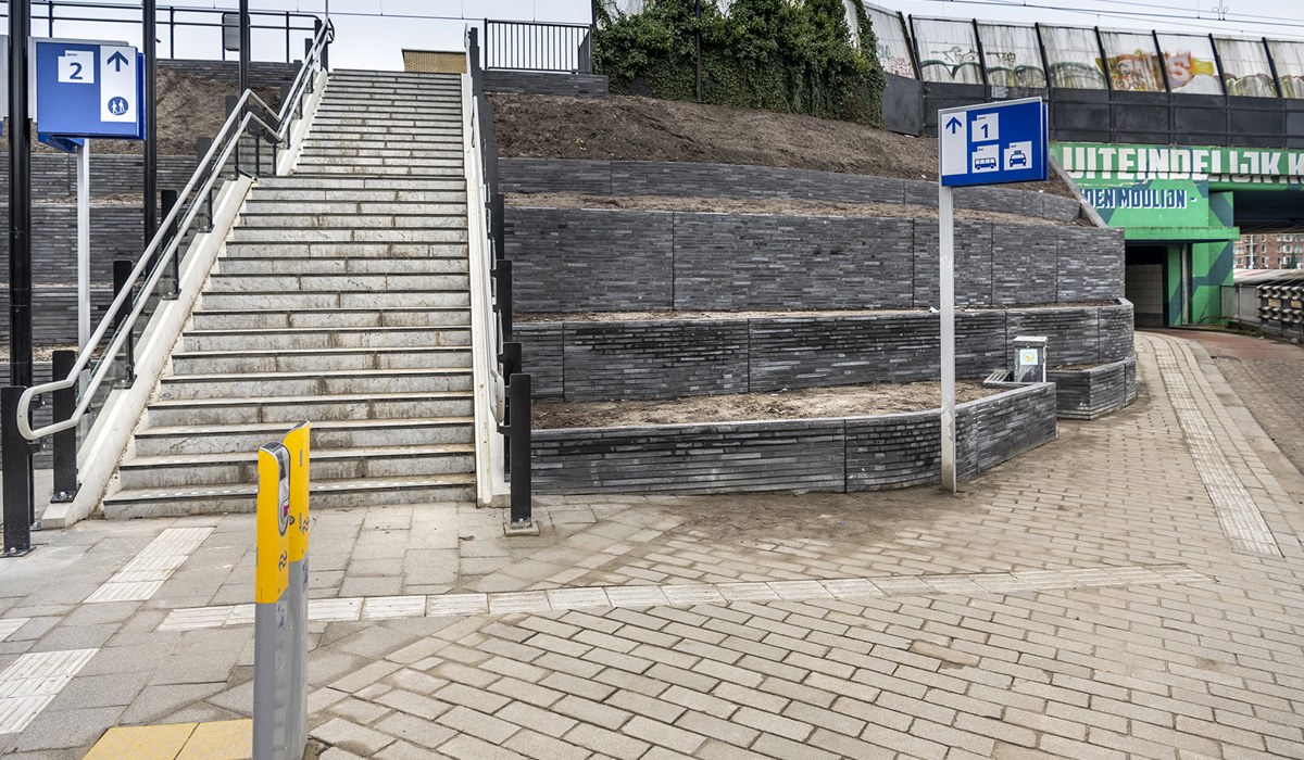 Ook zijn er nieuwe zitranden om de monumentale boom geplaatst en zijn de stalen trappen naar de perrons aangepakt. Deze zijn vervangen door natuurstenen trappen. Die zien er niet alleen mooier uit, maar zijn ook gebruiksvriendelijker voor blinde en slechtziende reizigers met een hulphond.