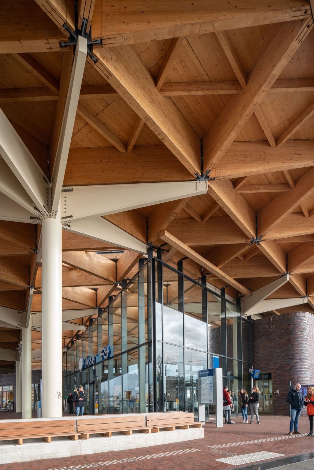 De houten kap straalt een bijzondere sfeer uit, met veel licht en ruimte. De kap biedt reizigers beschutting en heeft een indrukwekkende vorm. Het gebruik van de materialen geeft een eigentijdse en tegelijk natuurlijke beleving. Dorothé: “Dit station blijft je bij. Wat een eyecatcher.”