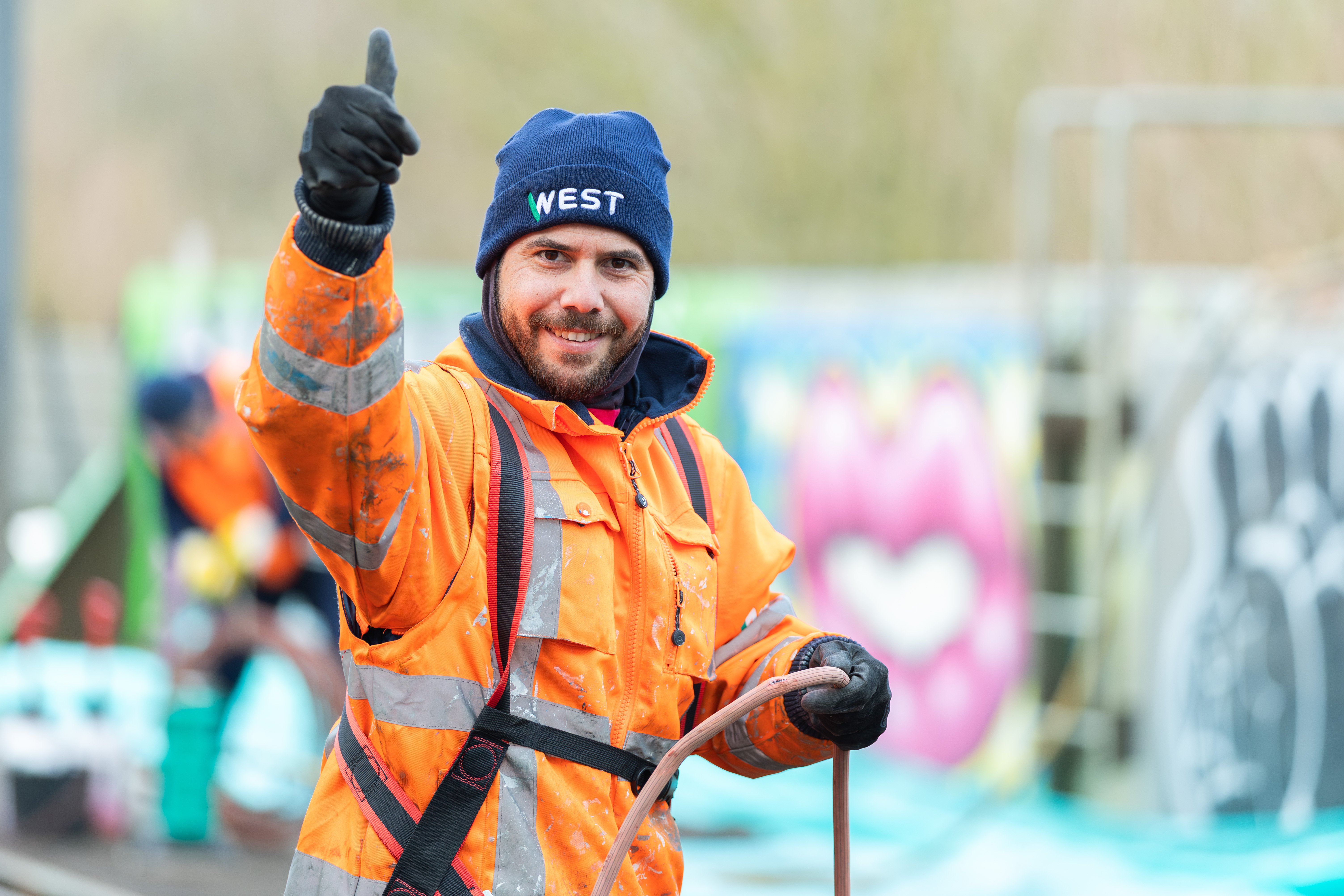 Het conserveren bestaat uit verschillende werkzaamheden, legt Admir Duric, projectleider bij WEST uit: “We beginnen met het onder hoge druk schoonspuiten van de brug. Hiermee reinigen we het metaal van vuil en graffiti. Vervolgens behandelen we plekken waar de brug in de loop van de tijd beschadigd is geraakt. Daar vallen ook roestplekken onder. Als we daarmee klaar zijn schilderen we de brug en ziet hij er weer als nieuw uit.”
