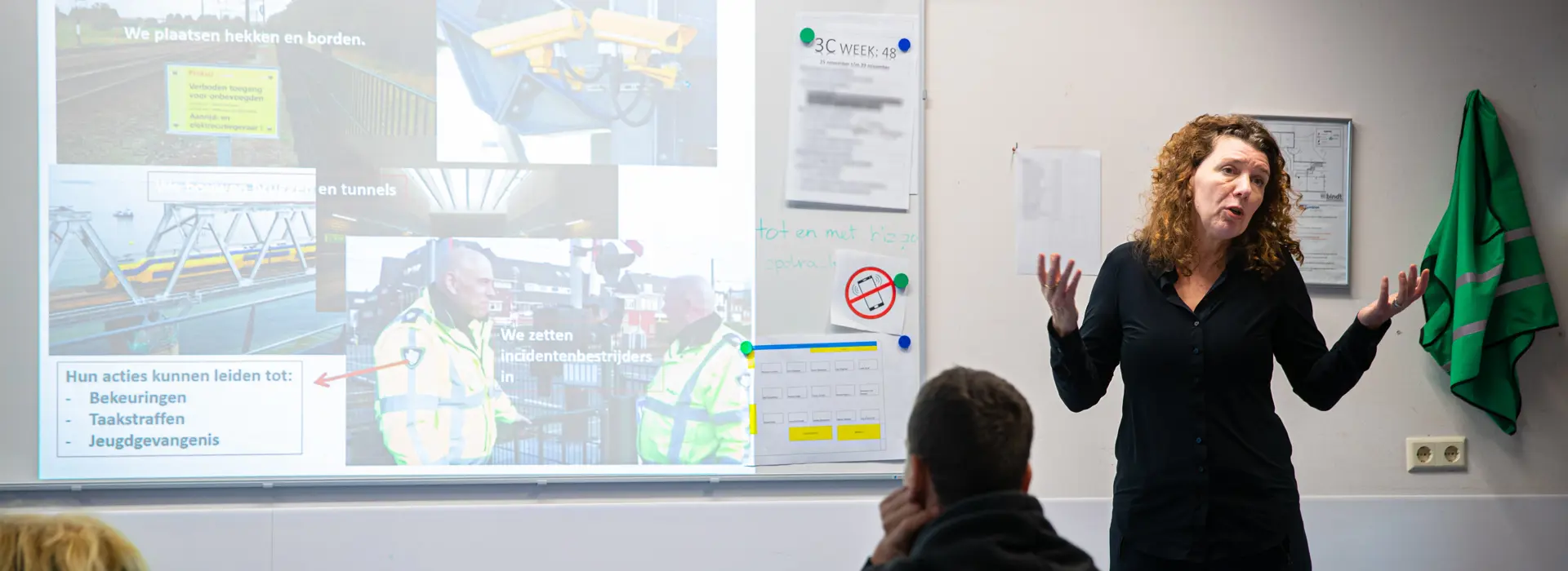 “Ik vind dat jongeren recht hebben op juiste informatie over gedrag rond het spoor”, vertelt Monique over haar motivatie. “Ik ben er altijd weer verbaasd over hoe weinig leerlingen, en zelfs docenten, weten van de risico’s en regels. We moeten er niet zomaar vanuit gaan dat ze risicovol gedrag alleen vertonen om stoer te willen doen. Hoewel ook ‘stoer doen’ aan bod komt in de les.”