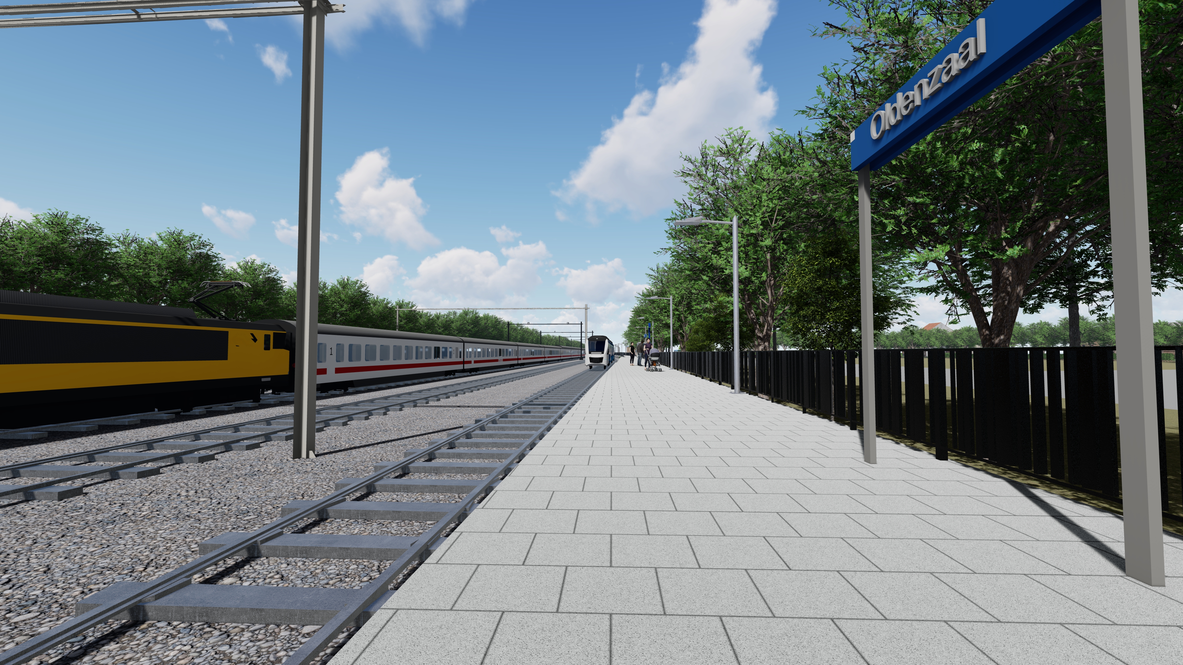 Om de reistijd van de Intercity Berlijn tussen Amsterdam en Berlijn op korte termijn te versnellen hebben we station Oldenzaal aangepast. We bouwden aan de noordkant van het station een nieuw stuk spoor en een extra perron. Hierdoor is er ruimte voor de Intercity Berlijn om sneller door te rijden.