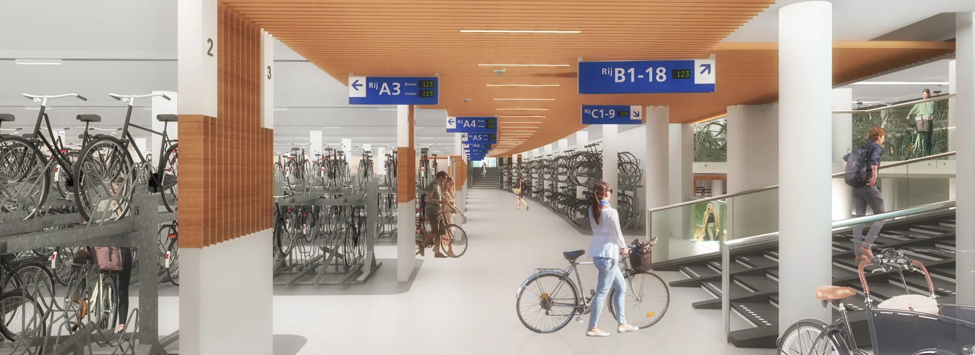 De ondergrondse fietsenstalling bij Amersfoort Centraal biedt straks ruimte voor 4800 fietsen. Standaardfietsen, buitenmodel fietsen (zoals bakfietsen) en ov-fietsen krijgen er allemaal een plek. Na de uitbreiding kunnen reizigers hun fiets onder het stationsplein parkeren en via een eigen looproute het station bereiken.