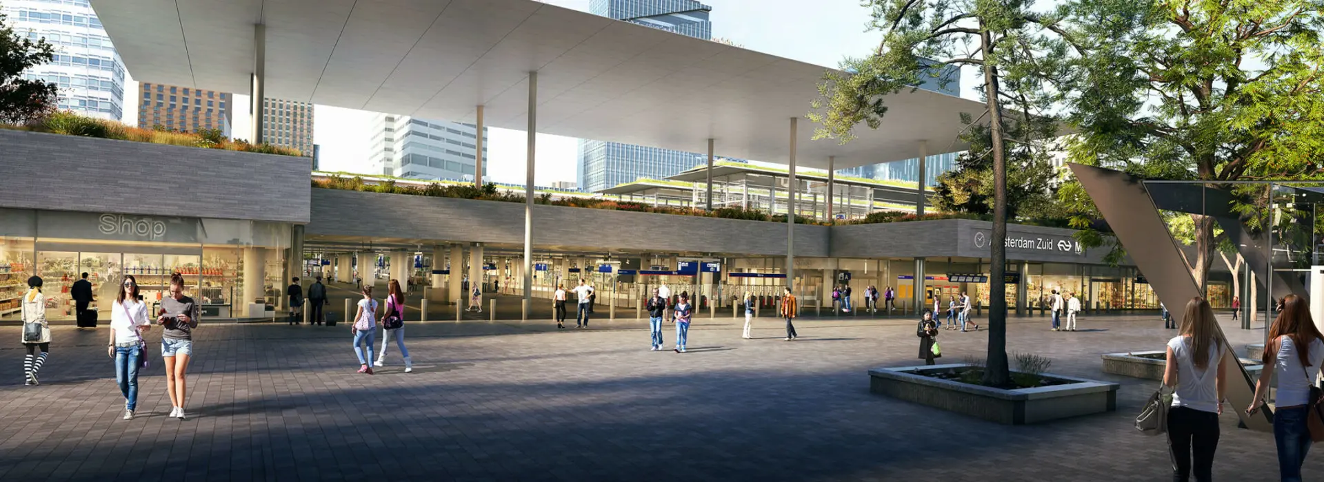 Het openbaar vervoerknooppunt Amsterdam Zuid krijgt boven de grond een nieuw trein- en metrostation, met aan weerszijden bus- en tramstations. Daaromheen krijgt het stationsgebied een groene inrichting. De huidige stationsentree, de Minervapassage, wordt verbreed van circa 12 naar 40 meter en er komt een tweede entree, de Brittenpassage. In en tussen de passages komen een winkelgebied en extra fietsenstallingen.
