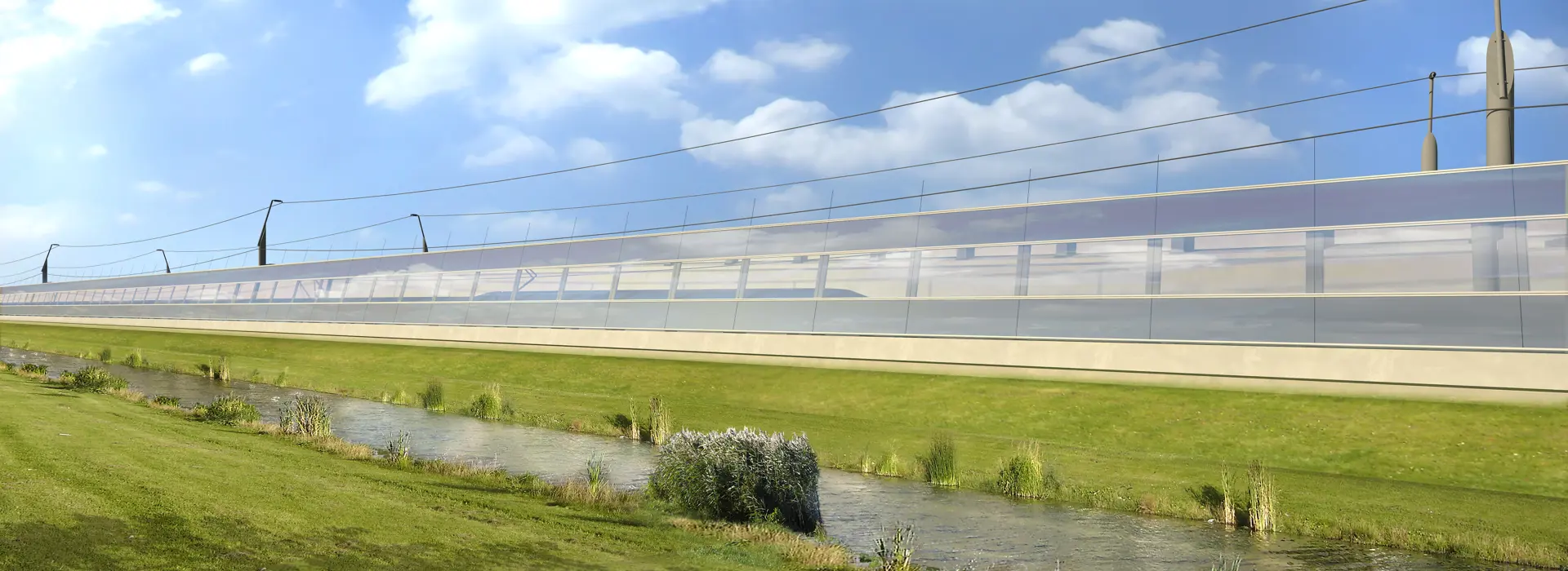 - Schermen oost- en westzijde volledig absorberend maken. Hier ligt de HSL verdiept, waardoor lagere schermen volstaan, zonder panoramaraam.