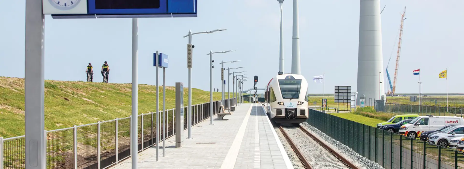 Met de trein naar de Eemshaven? Dat kan! De trein tussen Groningen en Roodeschool rijdt nu direct door naar de Eemshaven. ProRail heeft hiervoor het bestaande spoor verlengd en twee nieuwe stations gebouwd.