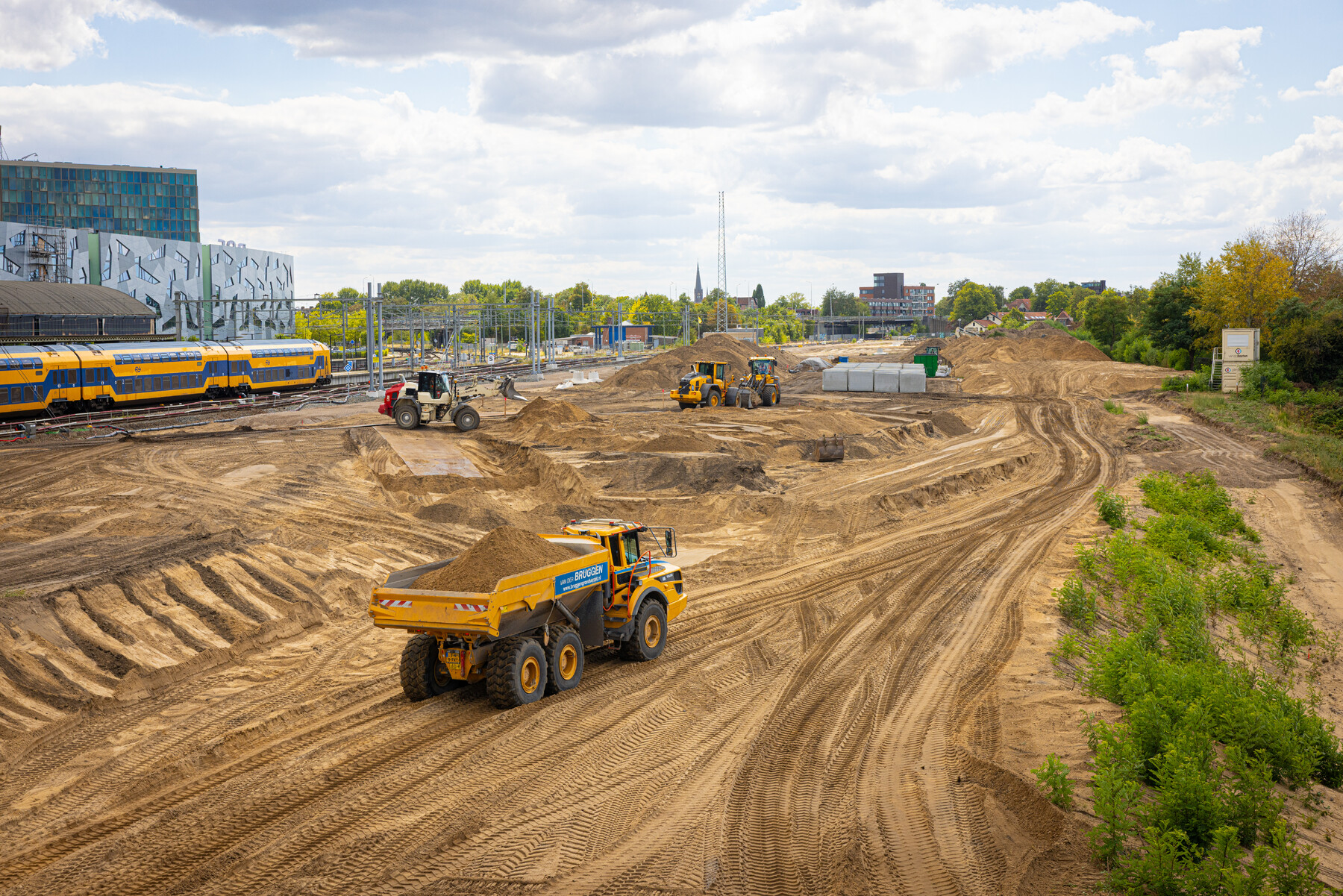 Hergebruik beperkt zich niet tot het spoor zelf. Binnen het project wordt ook gewerkt met een gesloten grondbalans. Dit betekent dat de grond die vrijkomt, op een andere plek binnen het project opnieuw wordt gebruikt. Zo wordt de uitgegraven grond bij de voorbouwlocatie weer gebruikt bij de bouw van het nieuwe perron. Op deze manier hoeft er geen grond te worden af- of aangevoerd. Dat leidt tot minder transportbewegingen en een lagere CO₂-uitstoot. Prettig voor de buurt en voor het milieu.