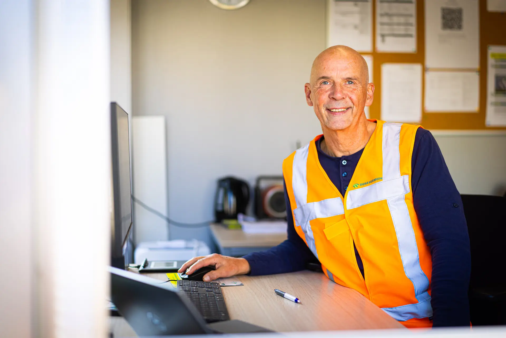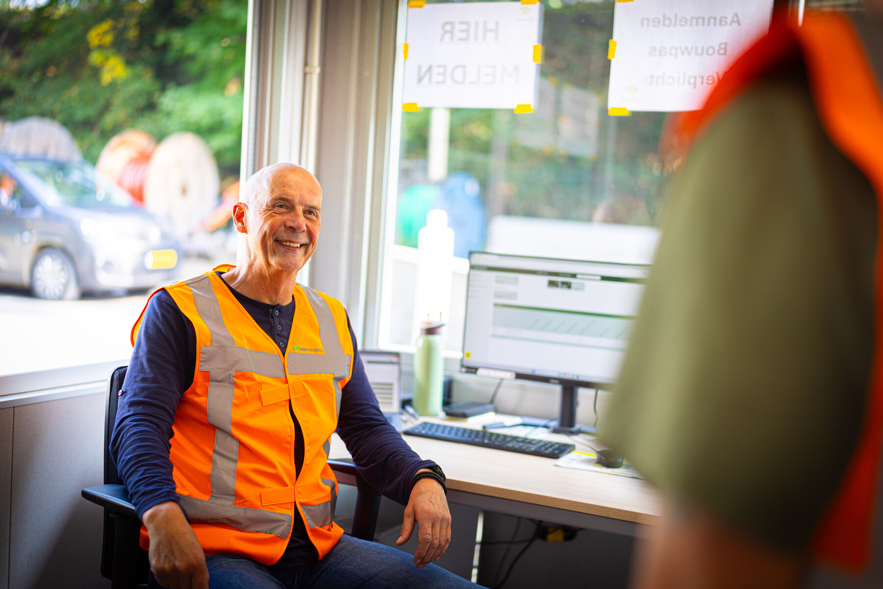 Als eerste aanspreekpunt is René het visitekaartje van het project. Hij verwelkomt iedereen die de bouwplaats betreedt, introduceert het project, verzorgt de aanmelding en geeft de veiligheidsinstructies. “Ik bepaal wie er wel en niet naar binnen mag”, vertelt hij. “Daarnaast vind ik het belangrijk dat iedereen met een glimlach start met zijn werk en met een glimlach ook weer naar huis gaat”. Alleen bevoegde personen krijgen toegang. Wie het terrein wil betreden, moet beschikken over de juiste certificaten. Zo draagt René dagelijks bij aan een bouwplaats die veilig, overzichtelijk en goed georganiseerd blijft.