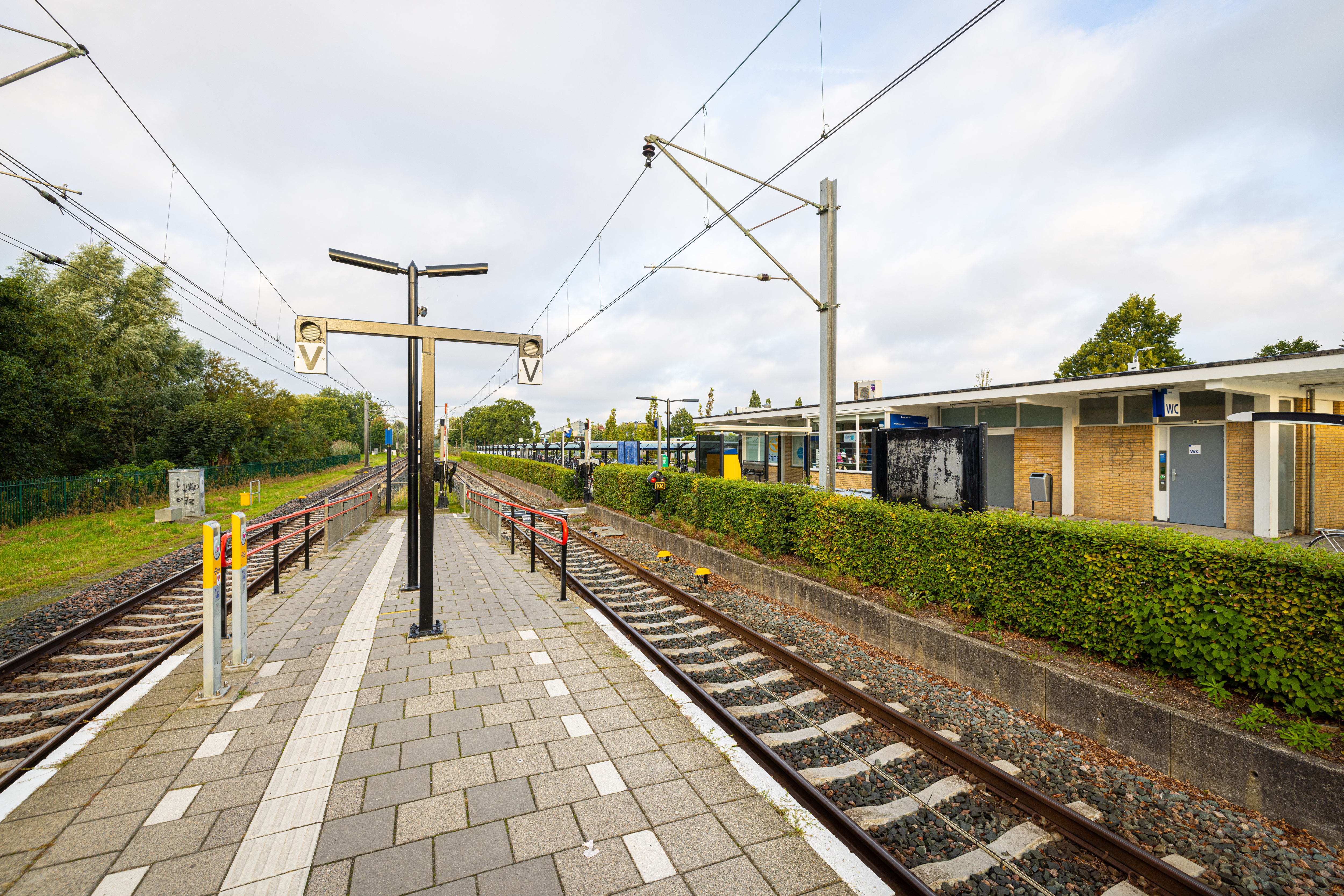 Het eilandperron is met een breedte van amper vier meter extreem smal. Eerst werd dit perron alleen gebruikt voor spoor 2; er was een apart perron voor spoor 1, dat inmiddels verwijderd is. Dat verklaart waarom het huidige stationsgebouw zo opvallend ver van het spoor staat. In 1885, toen het station haar deuren opende, zag het stationsgebouw er een stuk imposanter uit dan nu. Het station werd toen ook veel gebruikt voor de groente- en fruitveiling ‘de Tuinbouw’, die achter het station zowel een veilinggebouw als een overlaadstation had liggen.