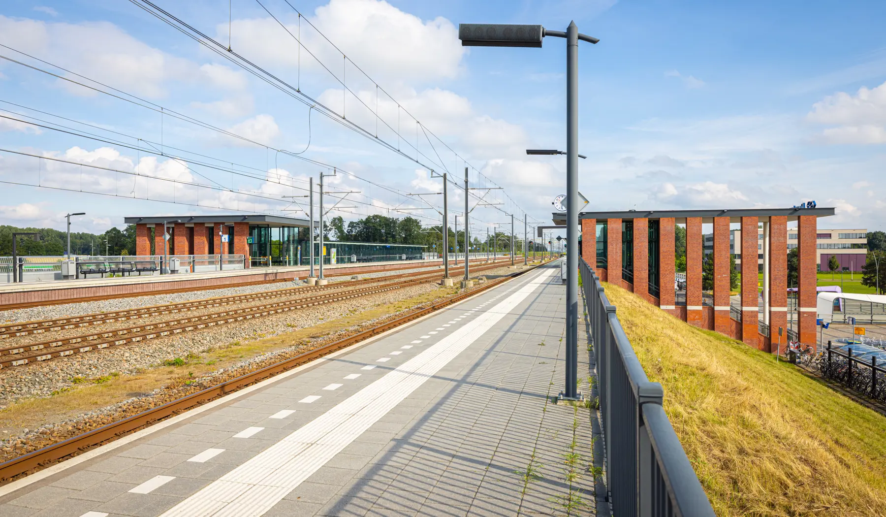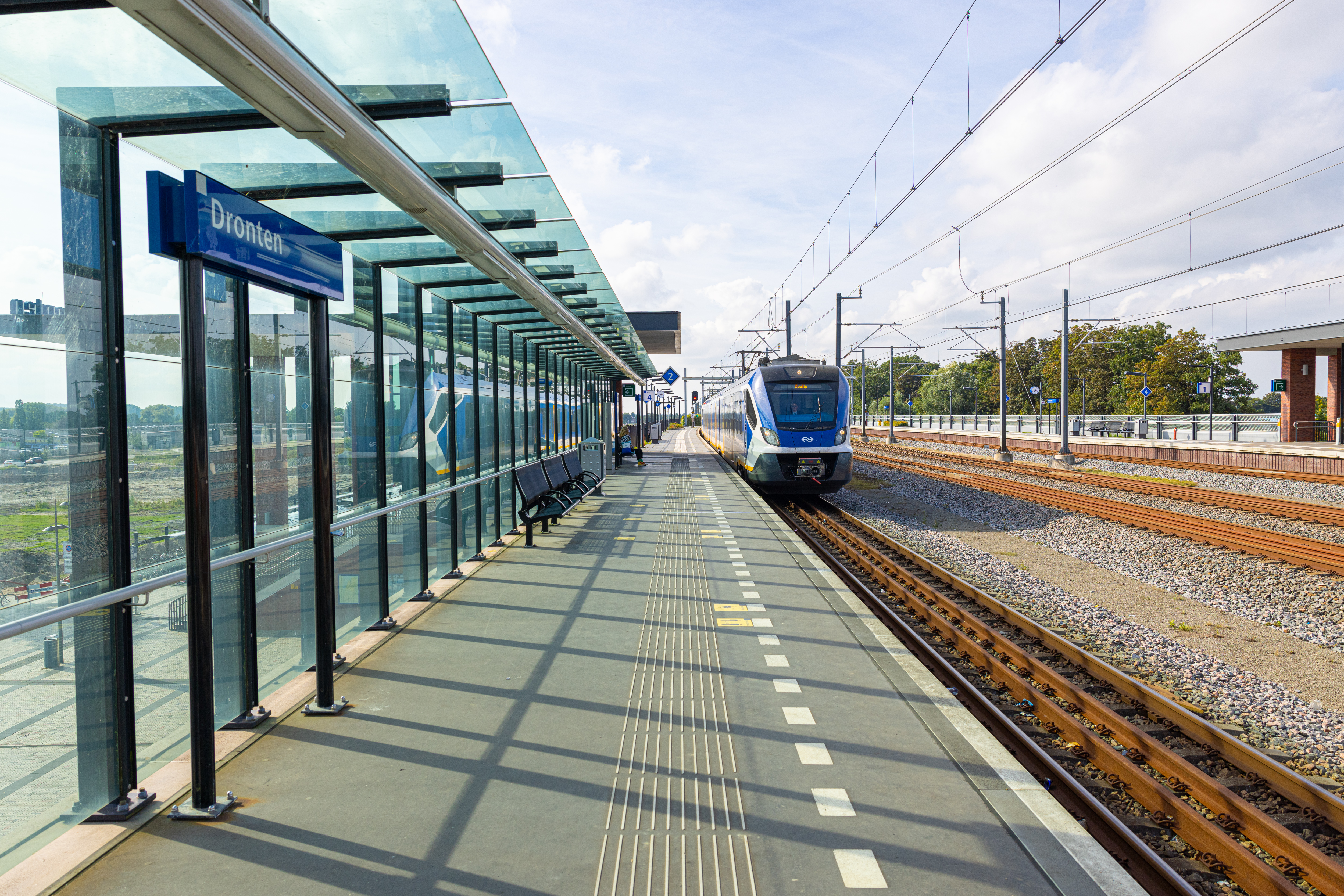 Vanaf station Dronten zoef je in één rechte lijn naar de tunnel. Het station, met haar statige ingang heeft vier sporen. Helaas kwam het begin dit jaar treurig in het nieuws door heftige vernielingen en vandalisme. Maar liefst 59 glaspanelen werden aan diggelen geslagen.
