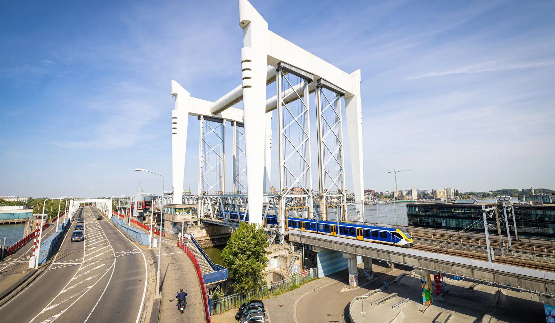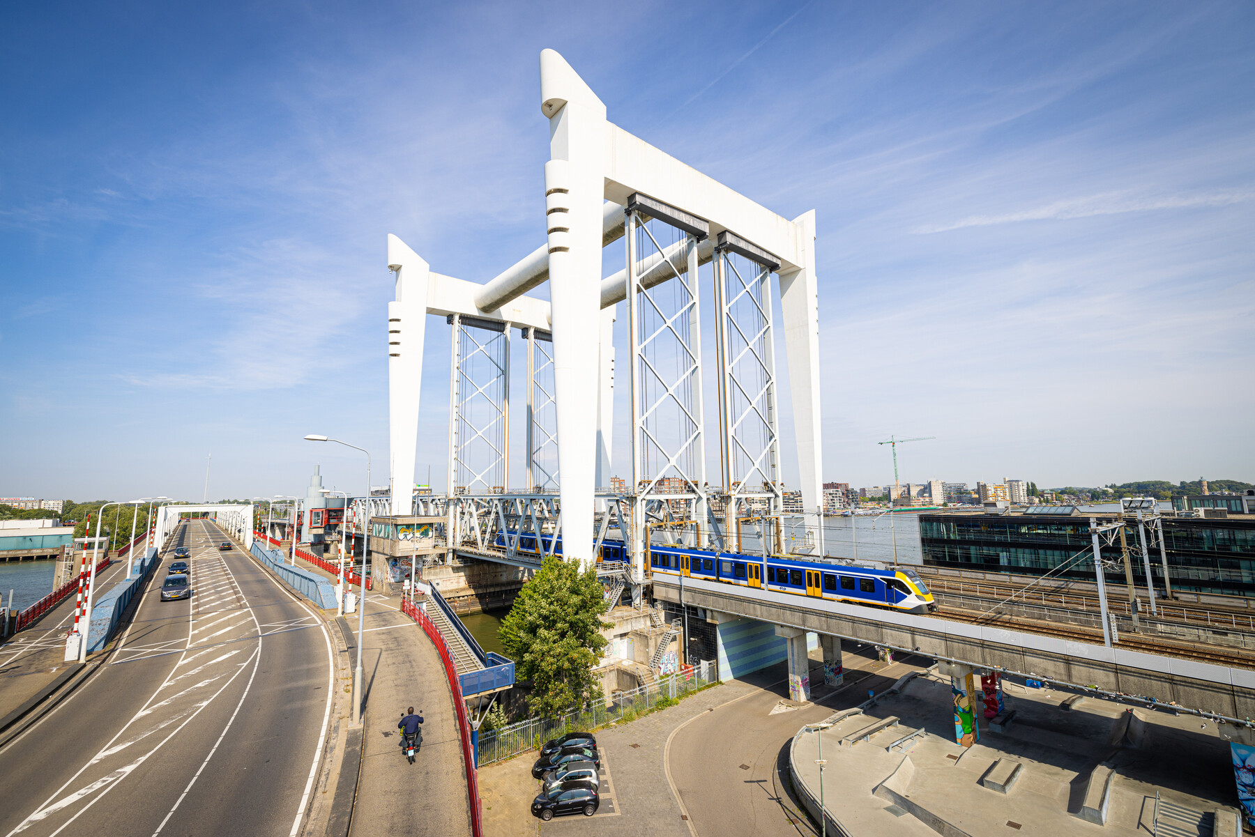 In 1934 kreeg de spoorbrug een bovenleiding zodat er met elektrische treinen kon worden gereden. Daarna, in 1970 werd de eerste brug vervangen voor een 55 meter hoge vlindervormige hefbrug die de bijnaam ‘De Vlinder’ kreeg. De onderdelen van die brug werden gemaakt in een fabriek in Gorinchem.