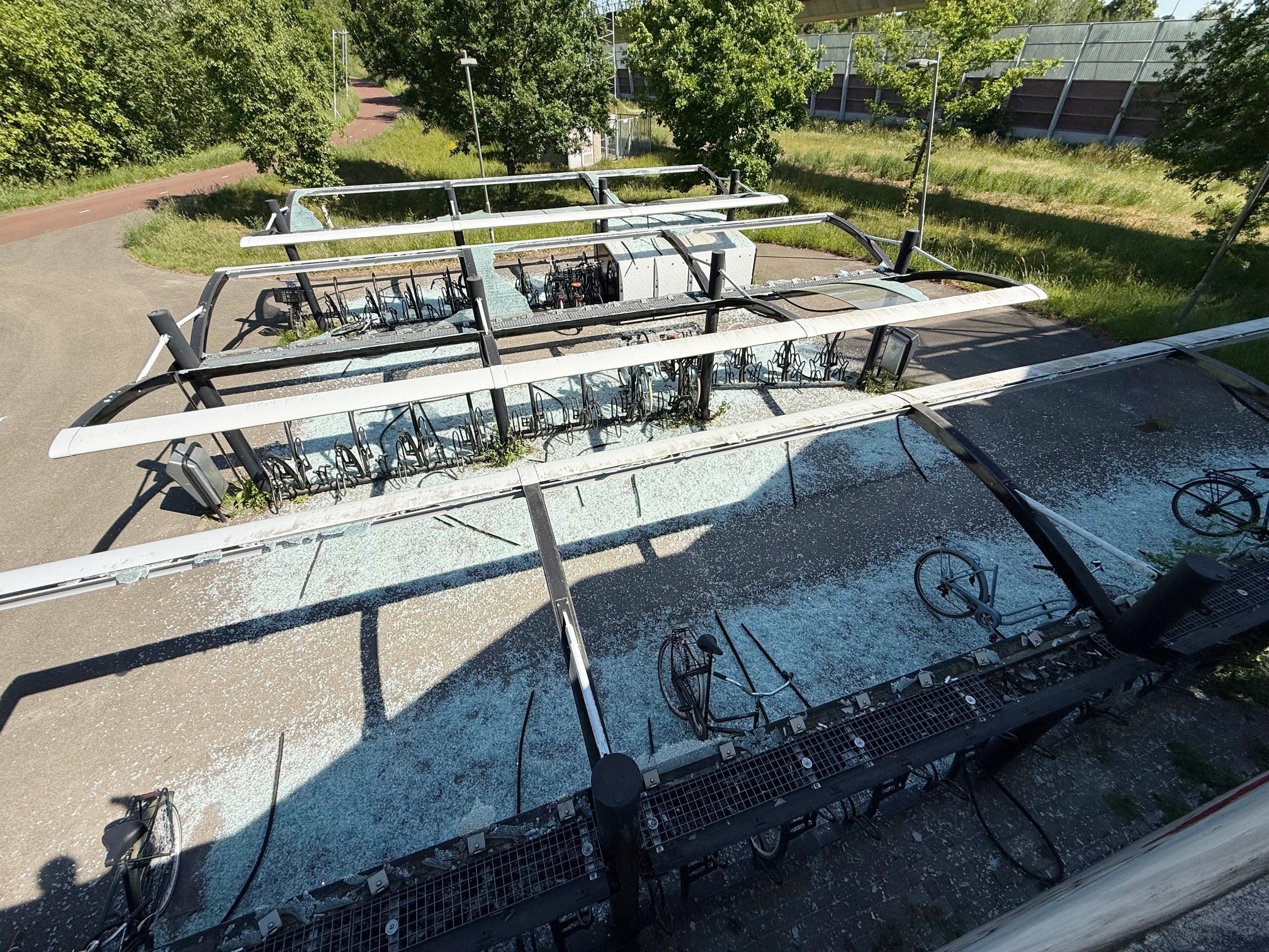 Fietsenstallingen beklad en vernield. De kosten hiervan lopen op tot 1 miljoen euro per jaar. Het komt vaak voor dat gestalde fietsen hierbij vernield worden en reizigers komen stallingsplekken tekort.
