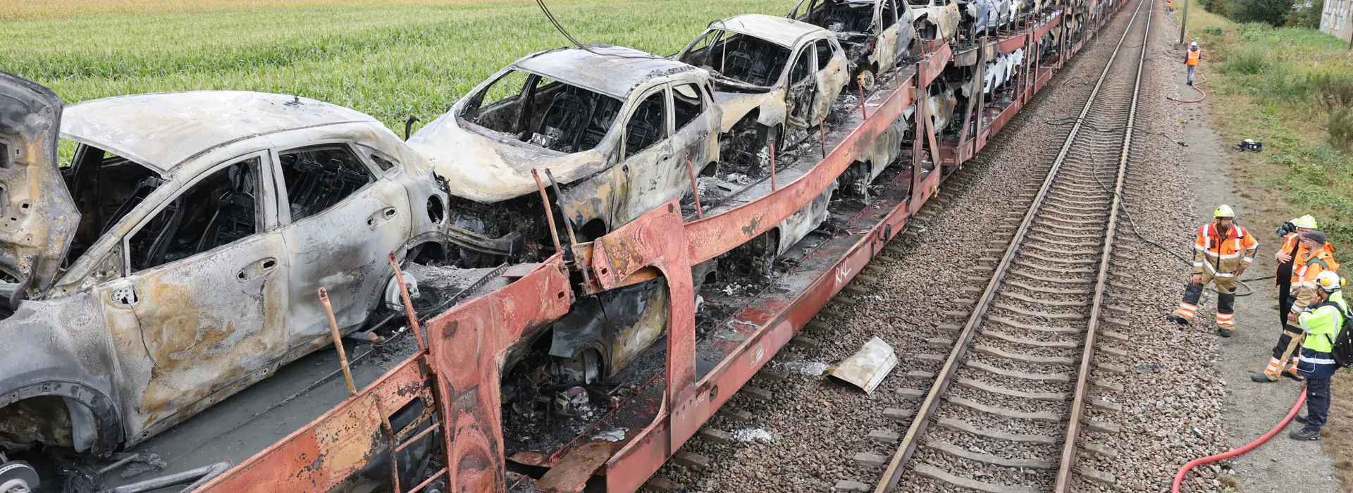 Op woensdag 14 september 2022 breken rijdraden te hoogte van overweg Vossendaal in Etten-Leur, waardoor de stroomafnemer van een goederentrein in de bovenleiding terecht komt. Op een drietal plaatsen ontstaat brand op de trein. De lading (hybride auto's) branden uit of raken beschadigd.