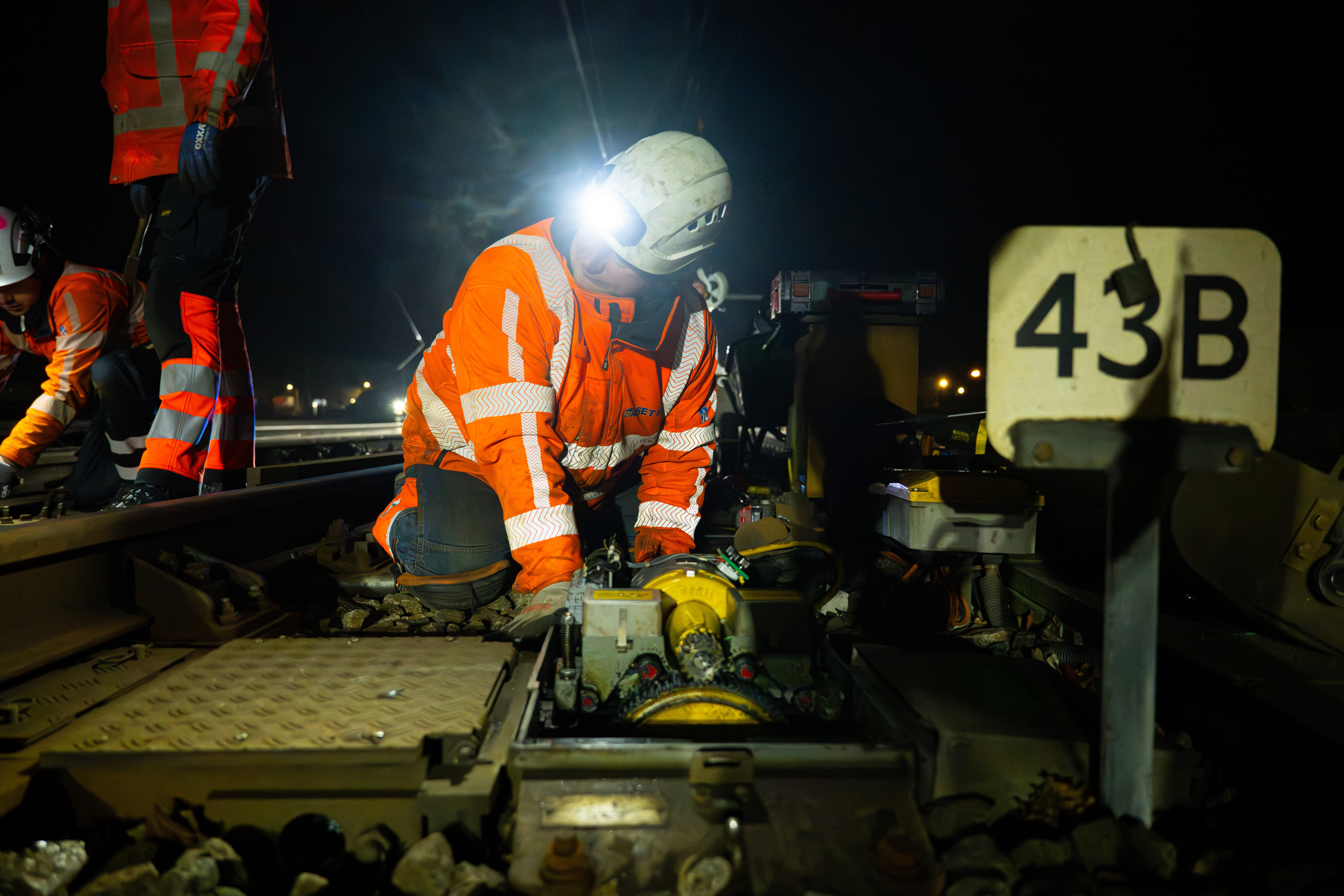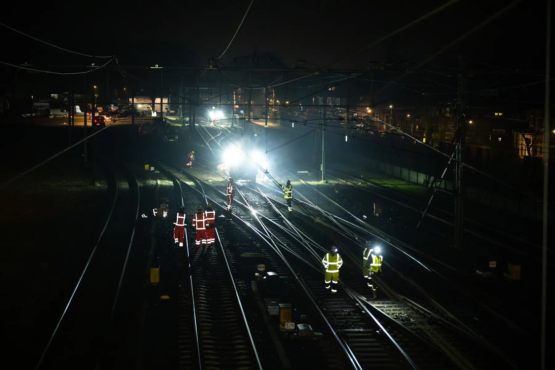 Tussen half 5 en 5 uur moet het werk klaar zijn, want dan beginnen de eerste treinen weer te rijden. Onze aannemers die ’s nachts werken hebben bijna alles wat nodig is om storingen op te lossen en onderhoud te plegen in het magazijn liggen, van spoorstaven tot overwegbomen. In een tijdsbestek van zo’n drie uur wordt van alles gedaan. De wissels worden onderhouden, net als de verwarming, de energiedragingen en de seinen. Ook het schoonmaken en leesbaar houden van spoorwegborden valt onder de werkzaamheden.