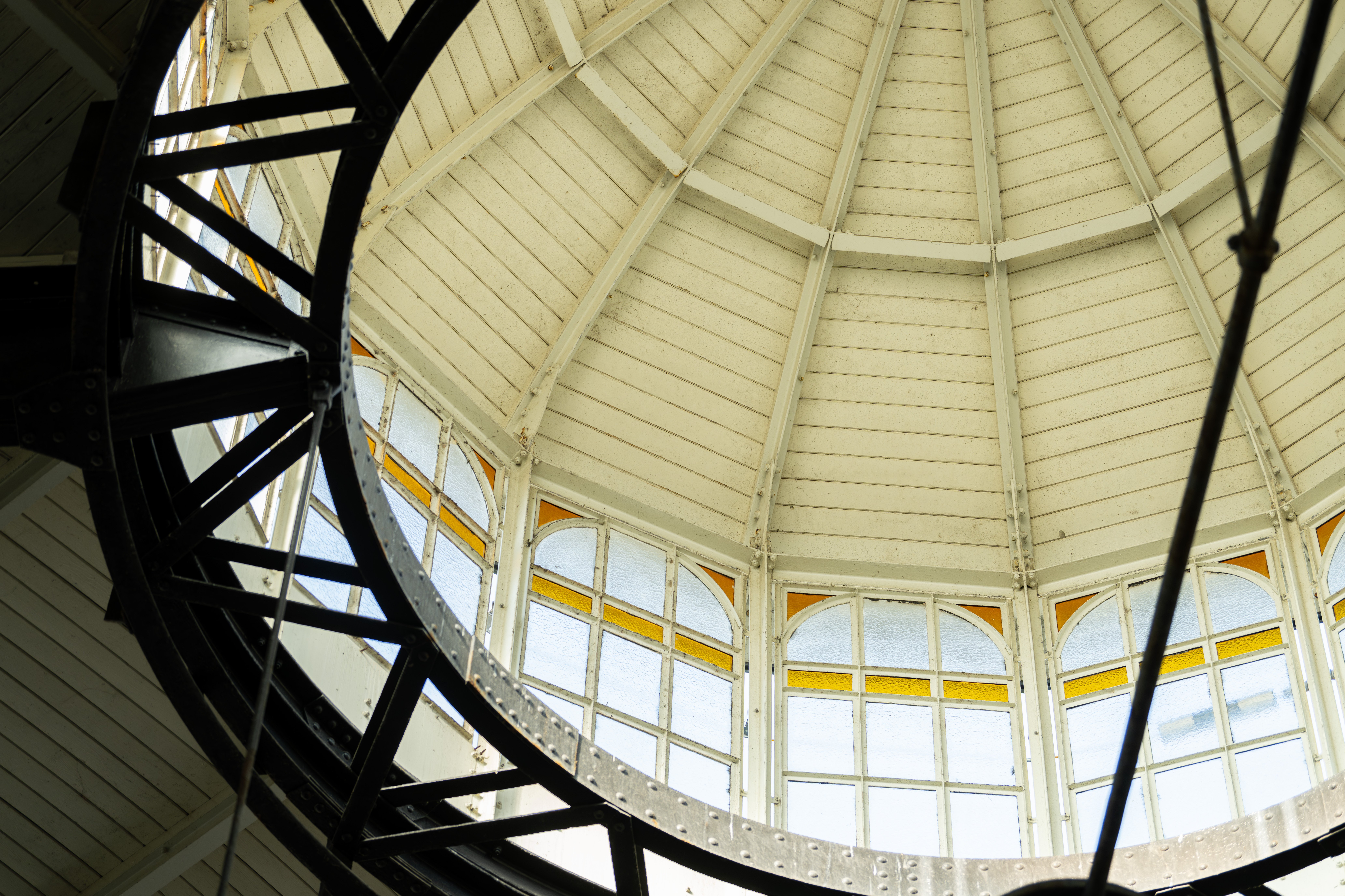 Architect Marloes van Zelst van Ruland Architecten vertelt iets meer over deze methode. “De perronkappen hebben een grenenhouten dakbeschot. Dit was oorspronkelijk alleen met een transparante laag bewerkt. Als je wil teruggaan naar hout, moet je veel schuren en vervangen, want sommige delen zijn later vervangen met mogelijk een andere houtsoort. Dat levert veel kleurverschil op, daarom is gekozen voor de huidige houttint”, vertelt Marloes. “En vroeger mengde men de verf met de hand. Dat kon over de lengte van de kap dan nog wel eens een beetje afwijken. Nu is voor één tint gekozen.”
