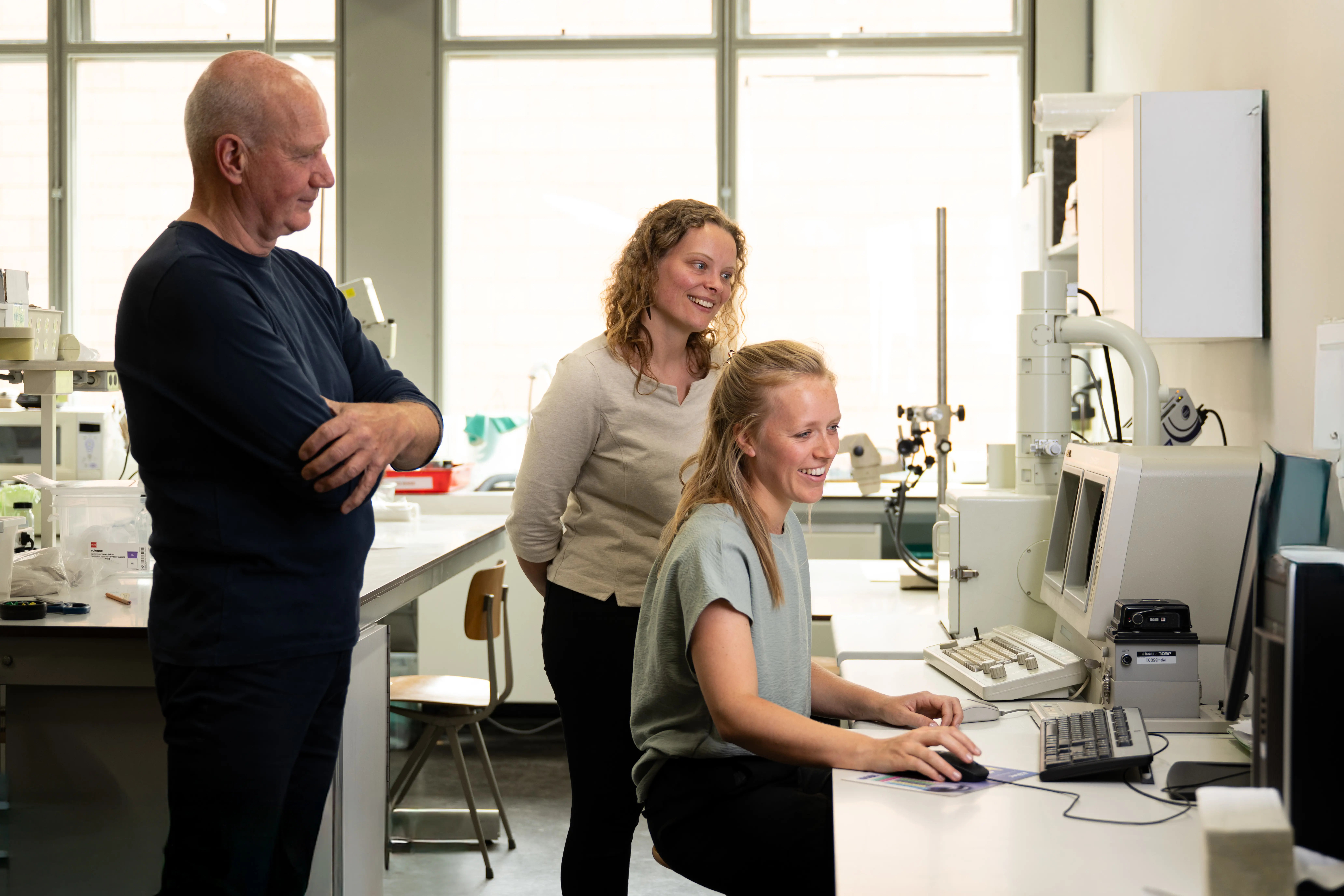 Het is een taak die Marloes vaker doet: “Wij begeleiden voor meerdere projecten kleurhistorisch onderzoek. SRAL doet het daadwerkelijke speurwerk in de kappen en wij komen dan in beeld voor de interpretatie”, vertelt ze. “Je speurt en analyseert in feite de kleurpigmenten. Als je de schilfertjes verf onder de microscoop legt zijn deze in de verflaagjes te zien (zie foto). SRAL vond in het laboratorium uiteindelijk een donkerdere kleur groen dan wat bij de perronkappen gevonden is.” In een zogenaamde kleurentrap of stratigrafie is precies te zien welke kleuren er allemaal gevonden zijn: onder meer wit, zwart, groen, bruin en menie.