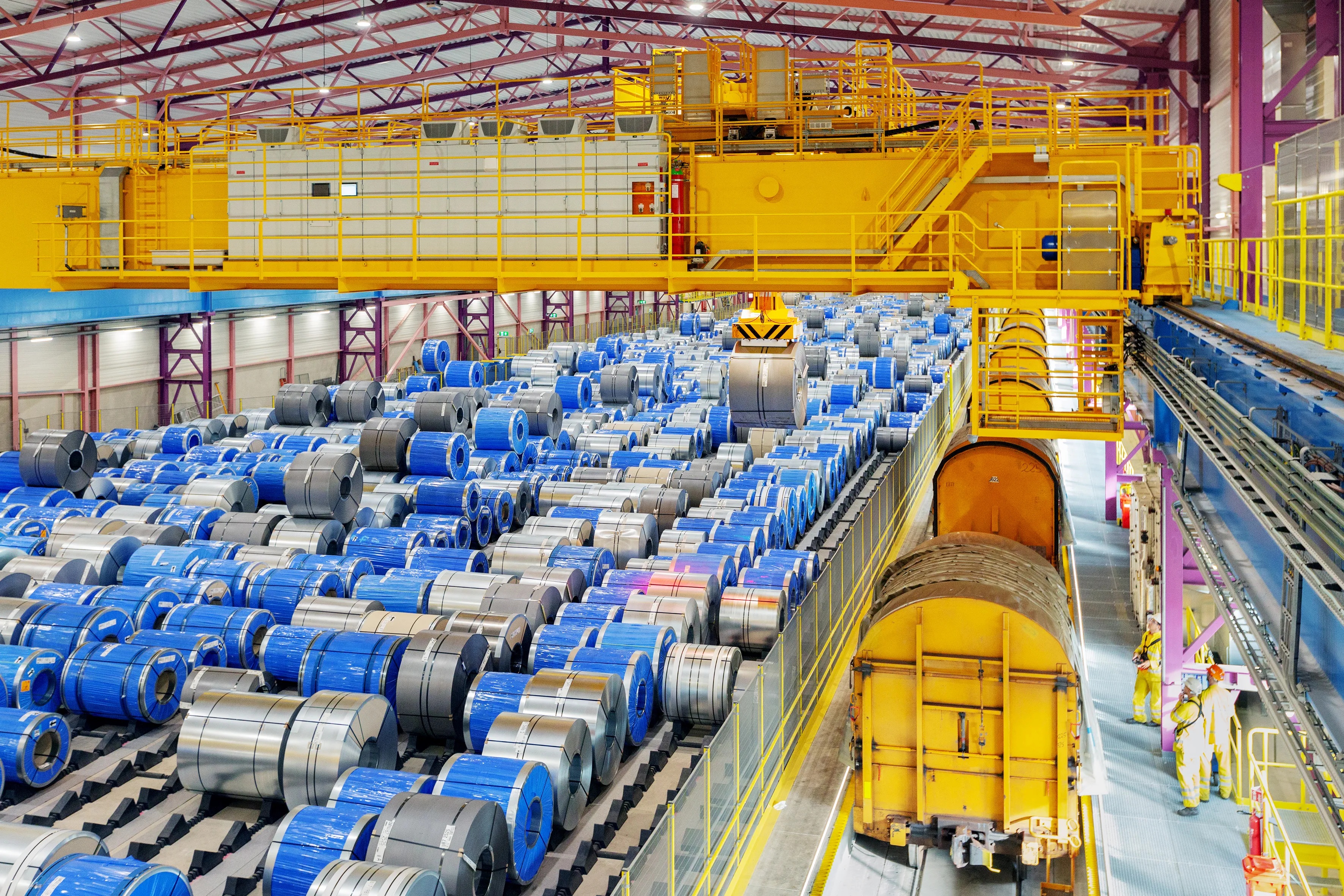 Ook op het eigen terrein, dat met 100 kilometer aan spoorlijnen bijna een miniatuurspoorwegnet op zich is, speelt het vervoer per trein een hoofdrol. “We vervoeren onder andere vloeibaar ijzer uit de hoogovens met zogenoemde torpedo’s naar de staalfabriek”, vertelt Martin. “Dat doen we met hybride locomotieven, een andere belangrijke stap naar schoner transport.”